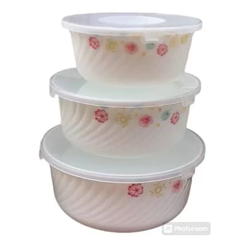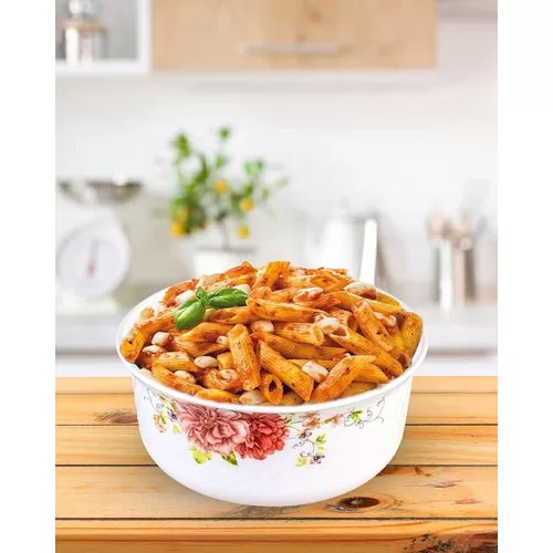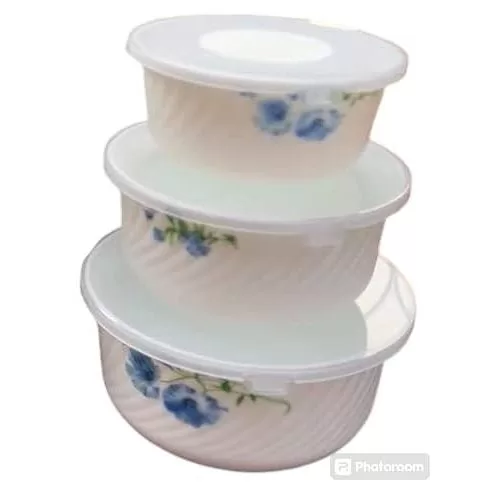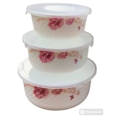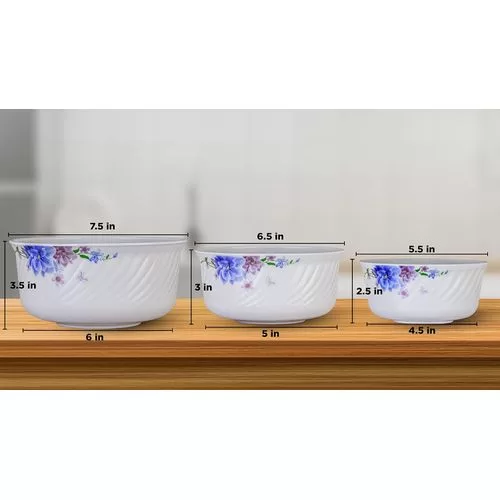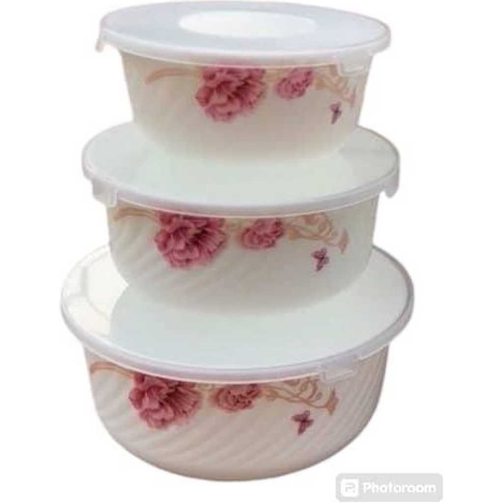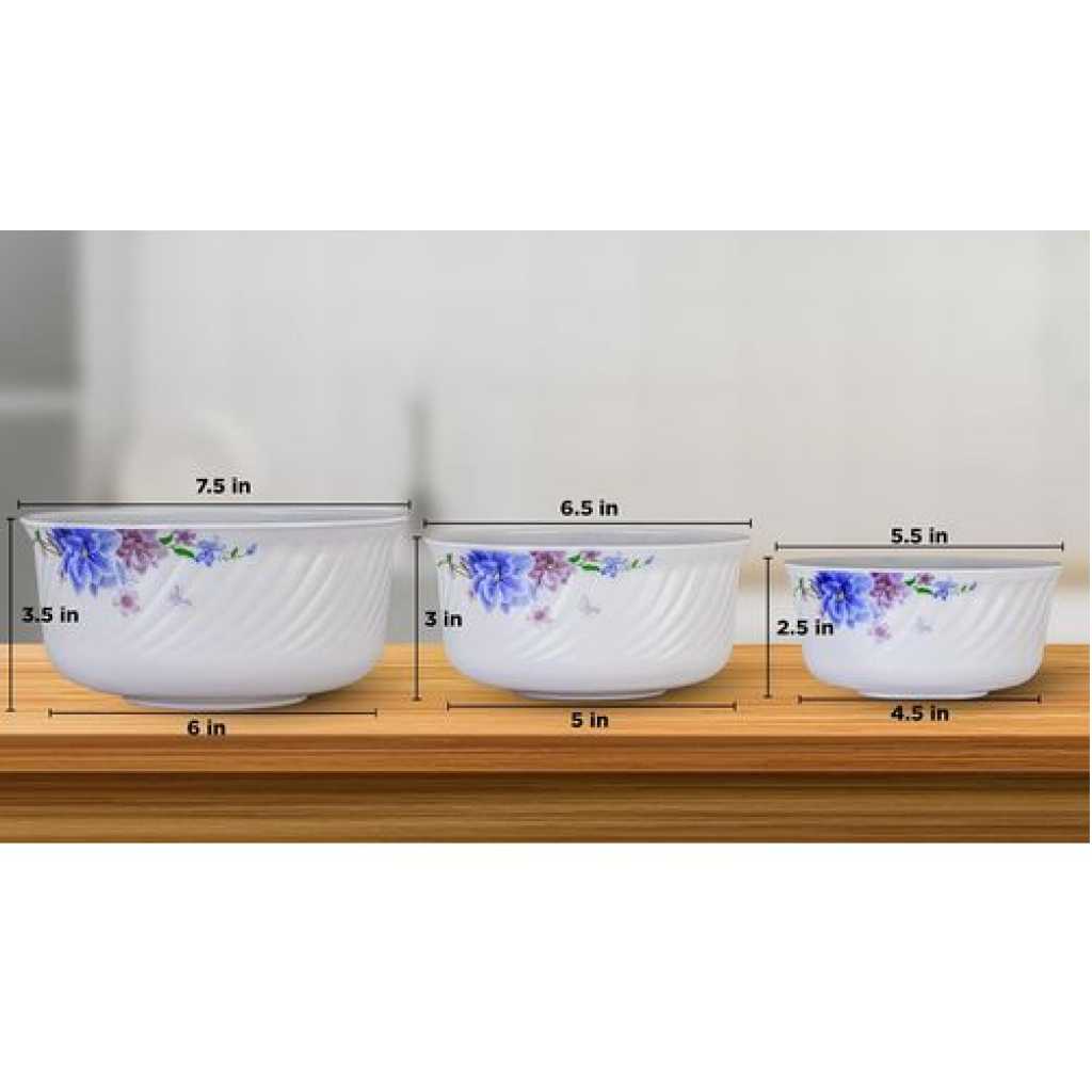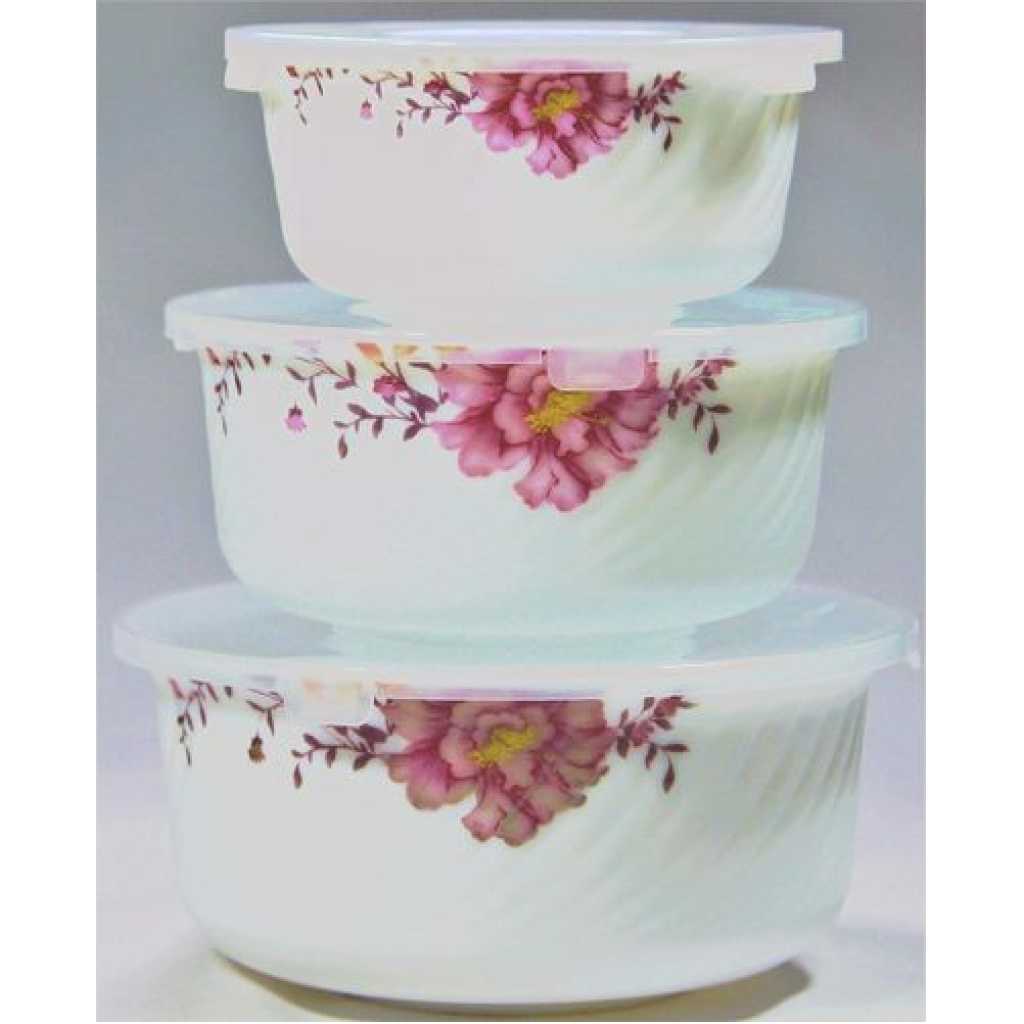 Opal 3 Piece Floral Serving Bowl Mixiing Bowl Set (1500ml, 1000ml, 500ml), Microwave Safe, Heat and Break Resistant with Plastic Lids- Multicolor