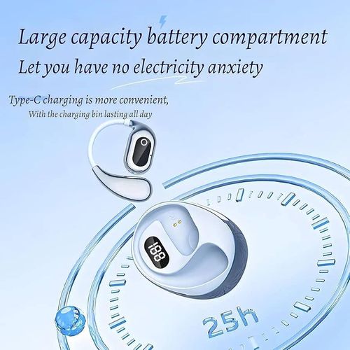 Name: Open XG99 Headphones Battery Life: 4-8 Hours Color: Black, White, Blue Weight: 80g Bluetooth Version: Bluetooth 5.4 Effec;tive Range: 10 Meters Earbud Battery Capacity: 40mah (Per Earbud) Charging Case Battery Capacity: 300mah Charging Time: Approximately 1 Hours Charging Port: Type-C Package Included: 1 Pair * Open XG99 Headphones 1 Pc * Charging Case 1 Pc * Instruction manual 1 Pc * Data cable 1 Pc * Lanyard Key Features: 【Directional Sound Technology】Experience immersive sound with the Open XG99 Headphones, featuring advanced directional sound technology that delivers rich, dynamic audio with deep bass and clear highs for an unparalleled listening experience across all music genres. 【14mm Large Dynamic Drivers】Enjoy every musical detail with our powerful 14mm dynamic drivers. These headphones ensure a robust bass and crystal-clear treble, making them perfect for listening to music, watching movies, or enjoying podcasts. 【360° Surround Sound】Engage your senses with 360° surround sound that creates a truly immersive, three-dimensional audio environment. Feel as though you are right in the middle of the action, enhancing not just music but also your movie watching experience. 【Stable & Fast Connection Equipped with Bluetooth 5.4 technology, the Open XG99 Headphones guarantee fast pairing and a stable connection. Enjoy uninterrupted audio playback for hours, allowing you to move freely without losing your sound quality. 【Up to 90 Hours of Playtime】With an incredible battery life of up to 90 hours, these headphones come with a compact charging case, making them ideal for long trips or all-day listening. The long-lasting power ensures you won’t miss a beat on your audio journey.