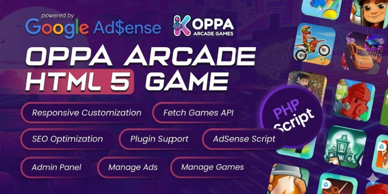 Oppa Arcade HTML 5 Game Portal CMS Script with SEO. OPPA Arcade CMS – HTML5 gaming platform with 30,000+ games, auto fetch, SEO settings, and Google AdSense-ready layout (2026).