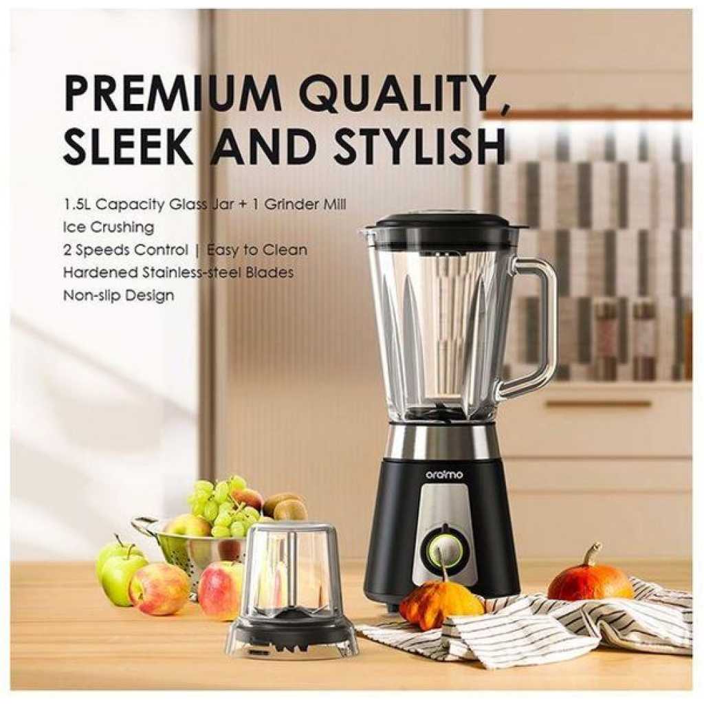 Product Parameters: Rated power: AC220-240V 50Hz 500W Model:OH-B1 Product Features: 1.5L Capacity Glass Jar + 1 Grinder Mill–Larger Juice Capacity With the 1.5L safety blender glass jar, which is sturdy, durable, impact-resistant, and easy to clean. It is perfect for entertaining guests or making enough for the whole family. Equipped with a pulse function grinder mill for coffee, herbs and spices, you can enjoy meal more easily. Crushes Ice With Ease–All the Power You Need Hardened stainless-steel blades combined with a powerful 500-watt peak power motor make crushing contents fast and easy, creating smooth, icy drinks in no time. Hardened Stainless-steel Blades–Efficient and Effective It has a distinctive and retro design with a lever that helps to start and stop the blender, as well as heavy duty Stainless-Steel blades that are meant to draw the mixture down into the blades and offer you a smoother flavour. 2 Speeds Control–Precision Chopping and Mixing. This blender for the kitchen has a high level of power and 2 different speeds for processing all types of ingredients. Easy Cleaning–Wash Thoroughly Just blend warm water and a drop of dish soap at your machine’s highest speed, and watch it self-clean in 60 seconds―no disassembly required. Key Features: Premium Quality, Sleek and Stylish 1.5L Capacity Glass Jar Ice Crushing 2 Speeds Control Easy to Clean Hardened Stainless-steel Blades Non-slip Design Rated power: AC220-240V 50Hz 500W