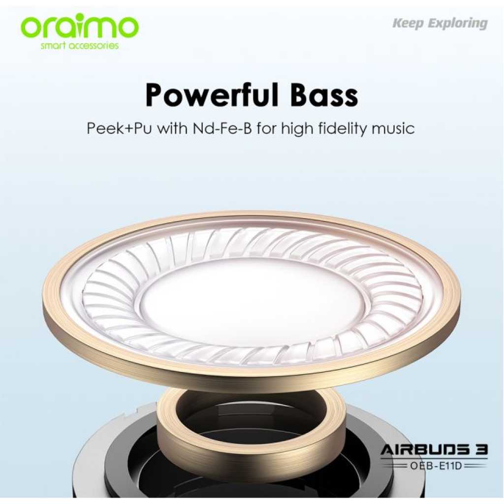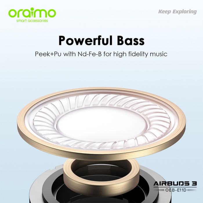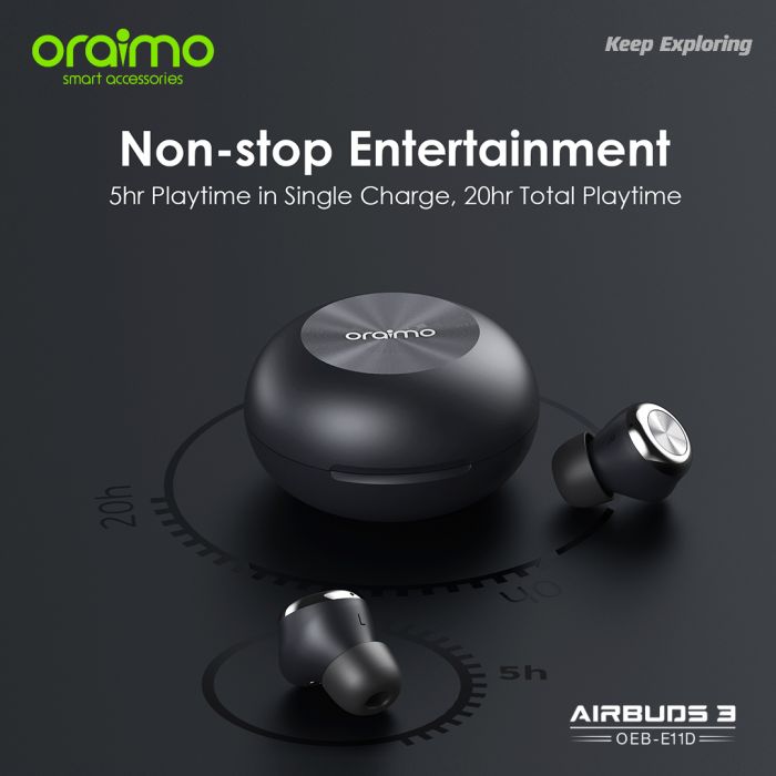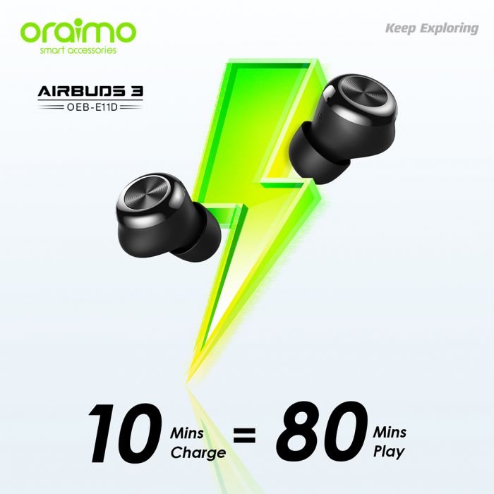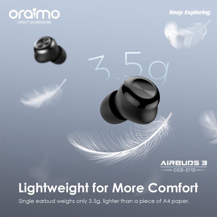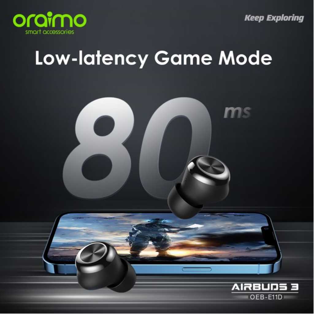 Key Features: Oraimo AirBuds 3 Powerful Bass IPX7 Waterproof TWS True Wireless Earbuds, Headsets OEB-E11D – Black. ✔IPX7 Waterproof ✔Powerful Bass ✔ Noise-Reducing Microphones ✔Compact and Comfortable ✔20-hour Playtime ✔Low-latency Game Mode