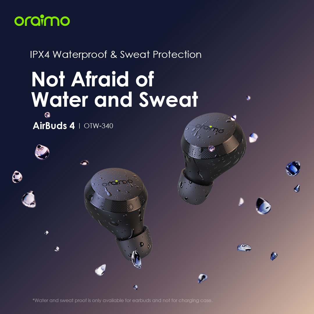 Product Parameters: Bluetooth Version: 5.3 Bluetooth Range: 10m Playtime: Up to 7 hours on single charge; case provides additional 31 hours Charge Input: Type-C *oraimo Lab test result. Model: OTW-340 Key Features: Bluetooth Version: 5.3 Bluetooth Range: 10m Playtime: Up to 7 hours on single charge; case provides additional 31 hours Charge Input: Type-C *oraimo Lab test result. Key Features Smart LED Power Display Powerful Deep Bass Up to 38 Hours Long Playtime Smart Fast Charge ENC Technology Crystal Clear Calls Anywhere Low-latency Game Mode Audio and Video Sync in Moment What’s in the box 1 x Oraimo AirBuds 4 ENC True Wireless Earbuds 1 x Type C usb cable