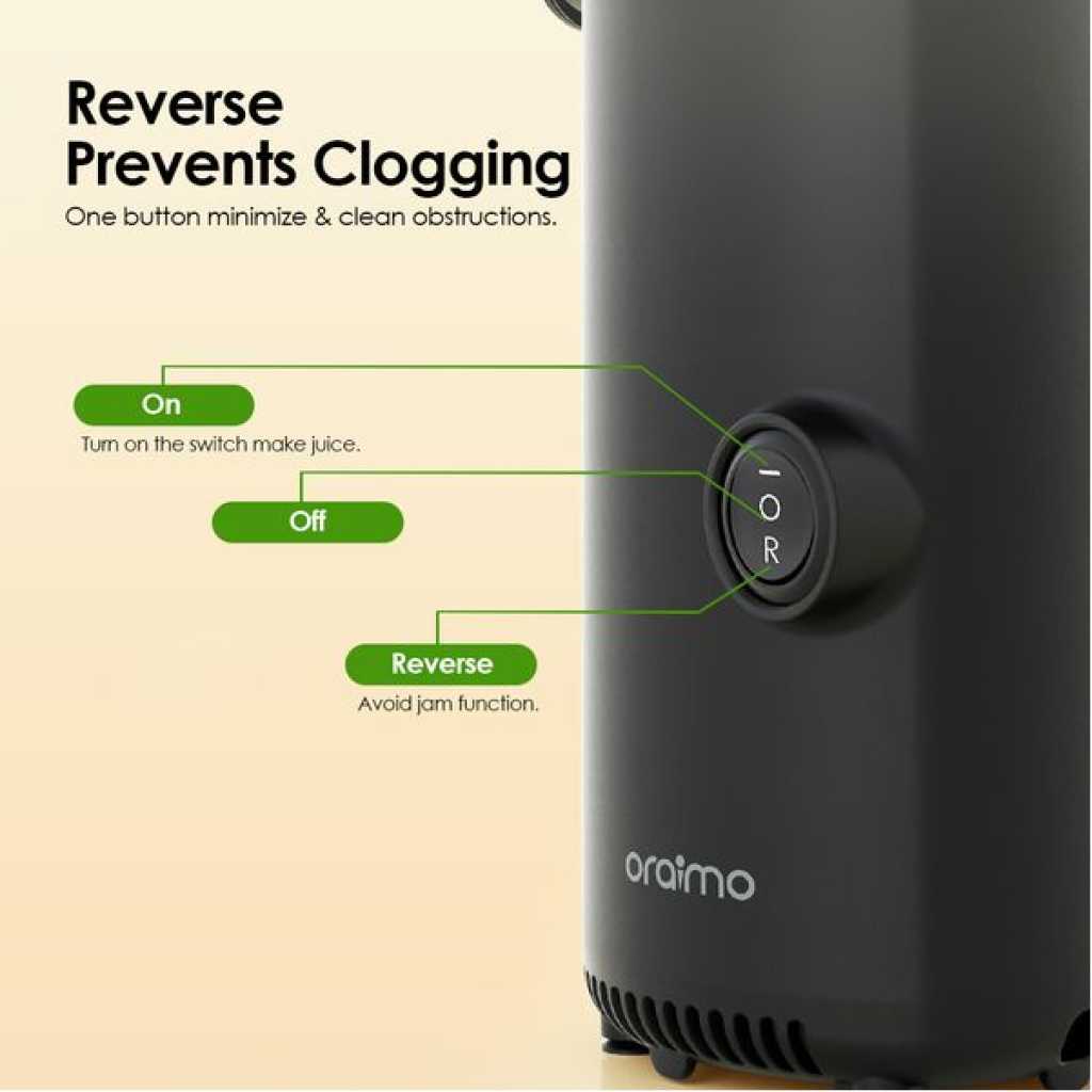 Product Material: PC+ABS+COPPER+PP Rating Voltage: 220V-240V 50/60Hz Rating Power: 130W Capacity: 500ml Noise: <70dB Net Weight: 2.6kg Product Dimensions: 125 x 100 x 360 mm Model: OMJ-201A Product Features: Space-Saving, Easy Storage Compact to fit wherever needed The EasyJuice Mini is as compact as a Coke bottle, easy to store, and features a portable design for effortless travel. High Juice Yield No need to add water to preserves all nutrients No water added, yet ensures a high juice yield, preserving the original juice from fresh fruits. No Manual Straining Needed Automatic pulp and juice separation Enjoy smooth, pulp-free juice effortlessly, without the need for manual filtering or extra steps. Efficient Juicing, Nutrient-Rich Enhanced blade effectively minimizes juice oxidation The non-metallic blade head design for efficient juicing, retaining maximum nutrients with no waste. Convenient Ingredient Placement Food tray design reduce operational hassle Convenient ingredient placement to reduce operational hassle. Reverse Prevents Clogging One button minimize & clean obstructions Easily clear pulp blockages with the reverse function for smooth juicing. 5s Quickly Installation Easily assembled in 3 Steps 5-second setup, 3-second disassembly, simple operation with no hassle. Rinse Clean in One Go Cleaning stains takes only 1 minute 3 easy-to-remove parts, no residue or odor, just rinse to clean. What’s in the box? Juicer Body x 1 Juicer Cup x 1 Pulp Container x 1 Pusher x 1 Cleaning Brush x 1 Welcome Guideline x 1