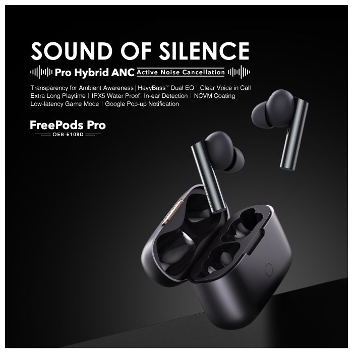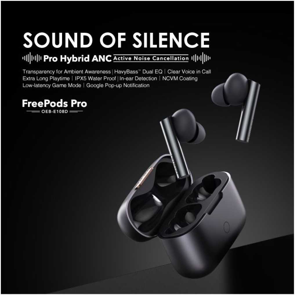 Oraimo FreePods Pro ANC Active Noise Cancellation TWS True Wireless Earbuds Headsets OEB-E108D - Black
