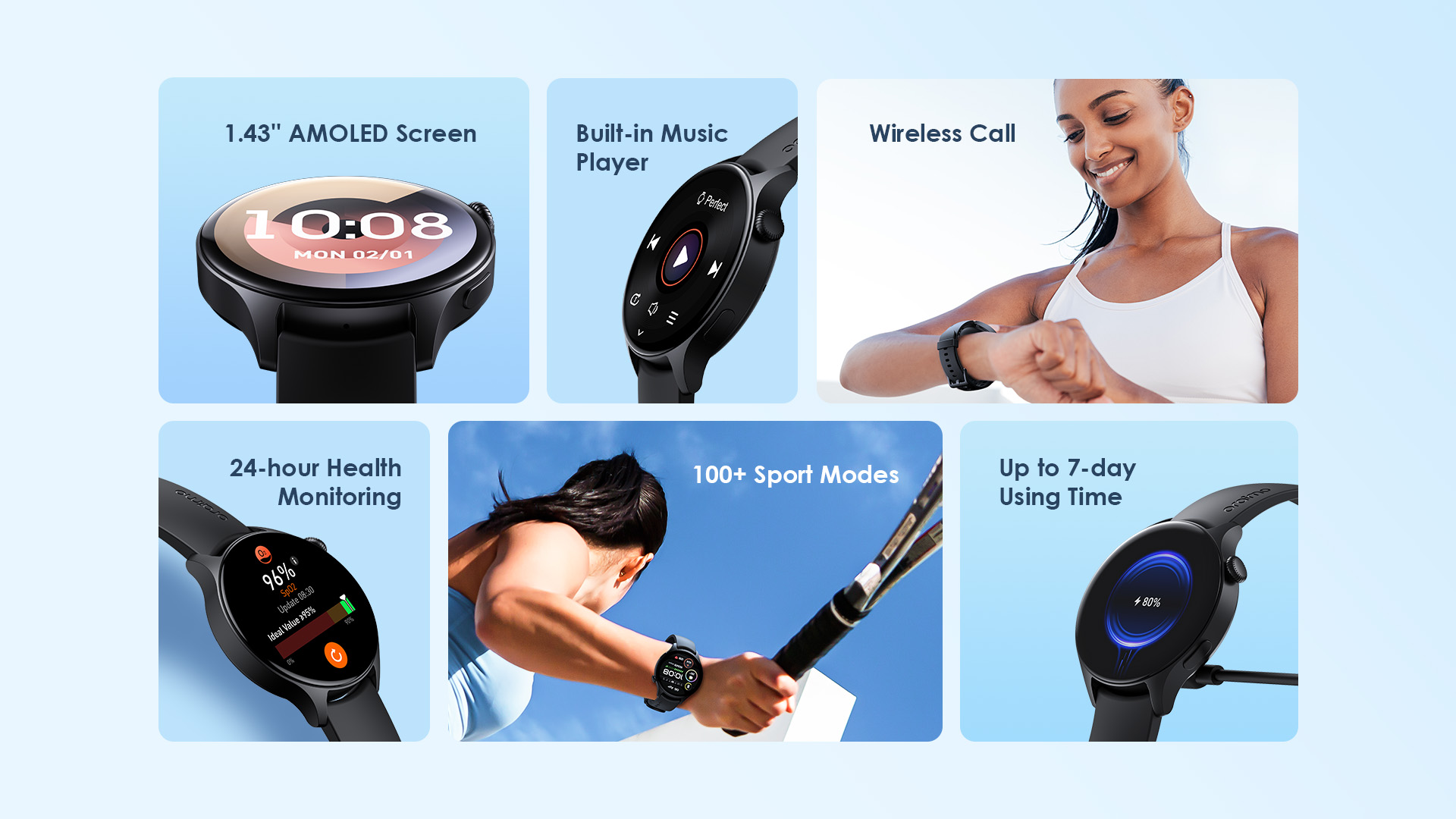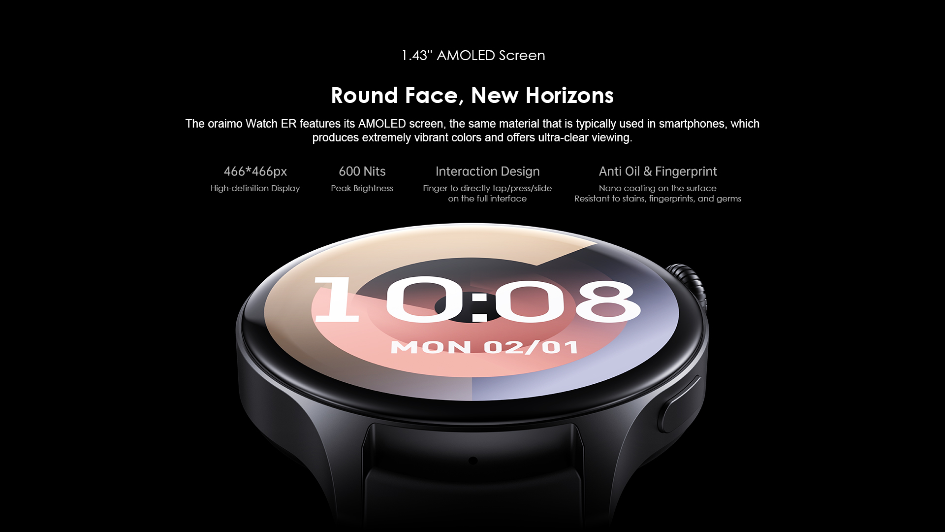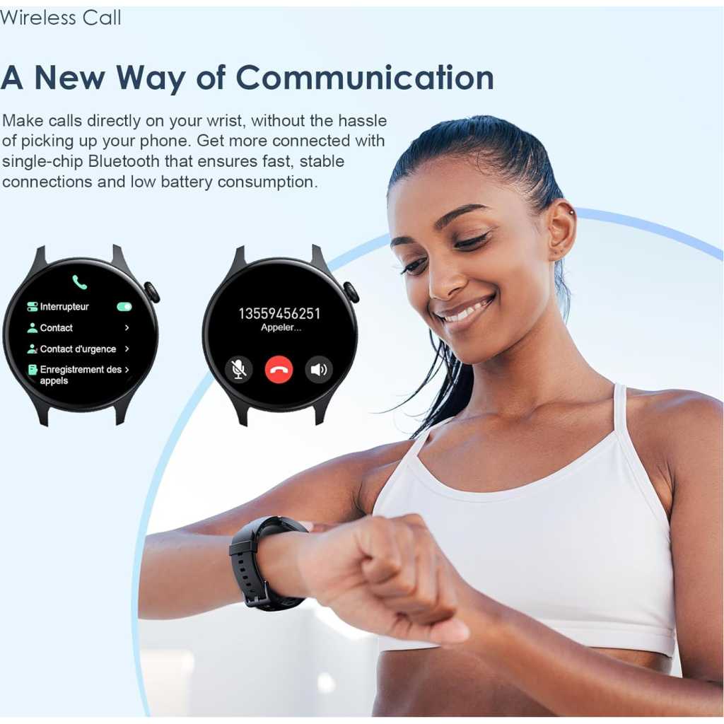 Key Features: Screen: 1.43″ AMOLED 466*466, COF Material: PC+ABS Battery Capacity:300mAh,4.35V Major Function : meter step、Bluetooth call、Heartrate、Blood Oxygen Waterproof:IP68