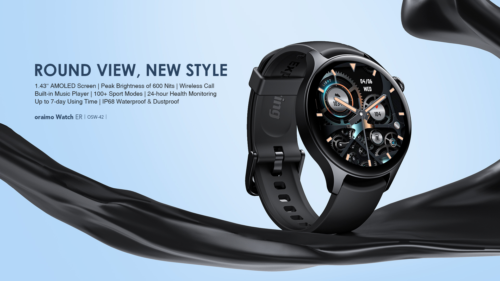 Oraimo OSW-42 Smart Watch ER 1.43" Smart Watch with Bluetooth Calling Features - Black