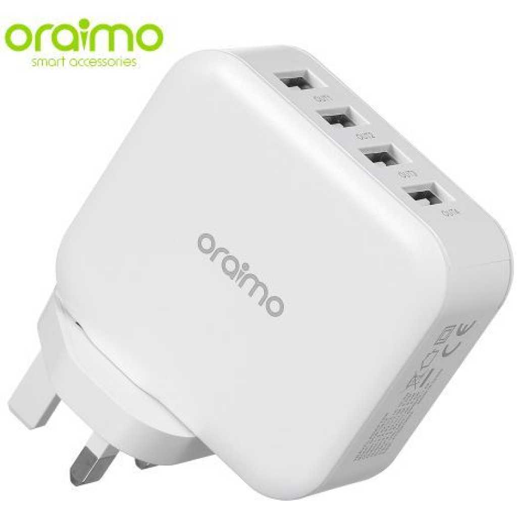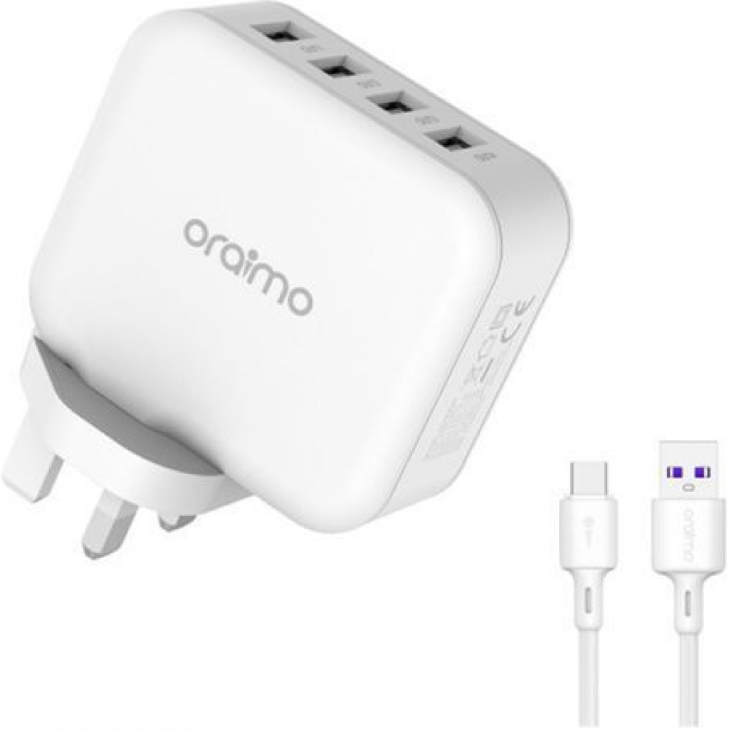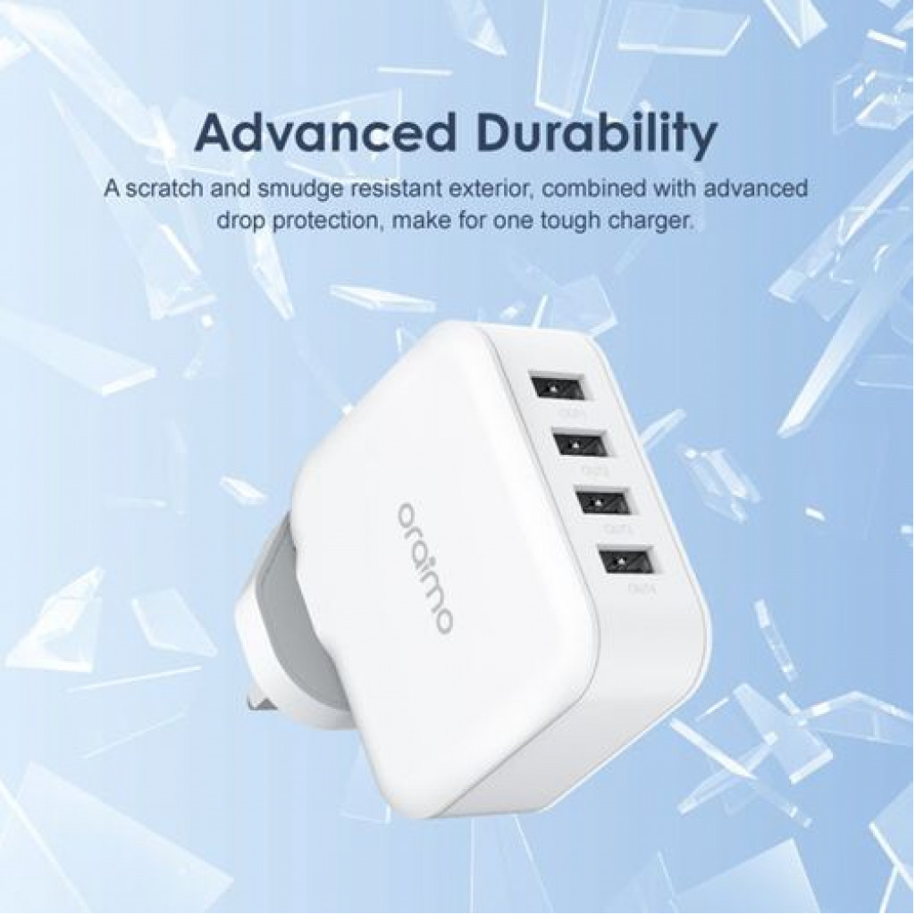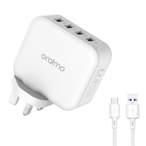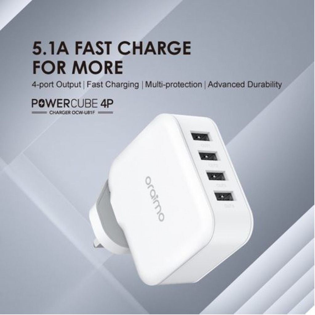 Key Features: Oraimo Phone Charger Fast Charger UK Dual USB OCW-U81F White 4 – Ports Output Fast Charging Multi Protection Advanced Durability. Fast Charge Cable 5.1A Fast Charge