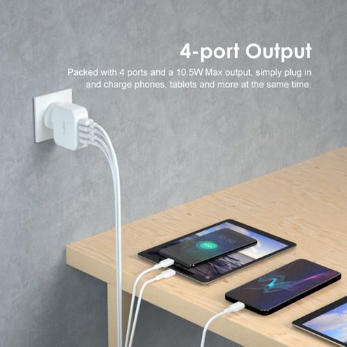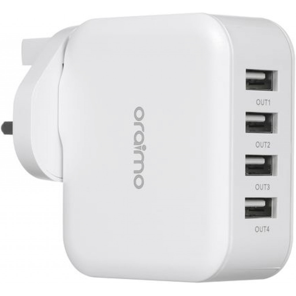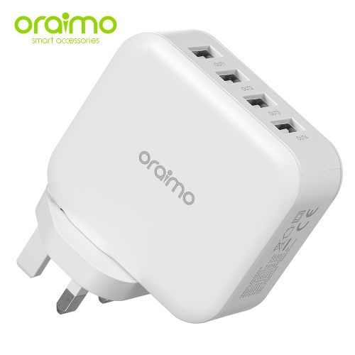 Oraimo Phone Charger Fast Charger UK Dual USB OCW-U81F White FEATURES: FORGET ABOUT TAKING4 CHAR-GERS EVERYWHERE YOU GO. WITH A 4-OUTPUT USB CHAR-GER, YOU CAN CHAR-GE TWO DEVICES AT THE SAME TIME. HIGH-GLOSS DETAILING AND COMFORT GRIP DESIGN GIVES A SLEEK LOOK TO THIS POW-ERFUL DEVICE. THIS TOUGH AND COMPACT CHAR-GER IS DEFINITELY YOUR PERFECT TRAVEL COMPANION. IT PROVIDES ORAIMO EXCLUSIVE SURGE PROTECTION, SHORT CIRCUIT PREVENTION, TEMPERATURE CONTROL, AND MORE TO DELIVER UNBEATABLE PROTECTION TO YOU AND YOUR DEVICES. SPECIFICATIONS: COLOR: WHITE PLUG TYPE: UK TYPE INPUT: 100V-240V 50-60HZ 100MA OUTPUT1: DC5V – 2.1A 10.5W MAX OUTPUT2: DC5V – 1A 5W MAX OUTPUT3: DC5V – 1A 5W MAX OUTPUT4: DC5V – 1A 5W MAX PACKAGE SIZE: 155 * 85 * 55MM PACKAGE WEIGHT: 174G PACKING LIST: 1 * PORTABLE SOURCE
