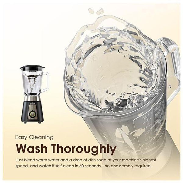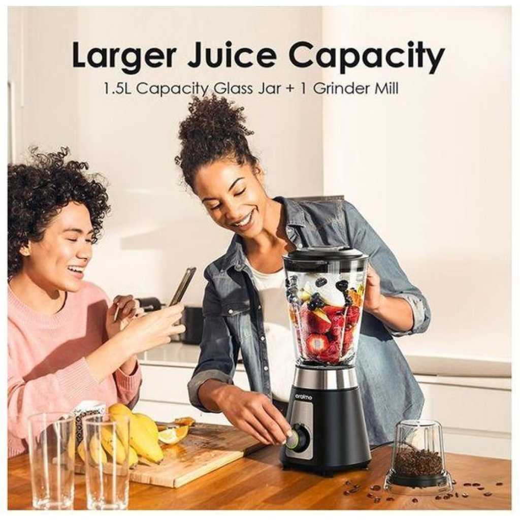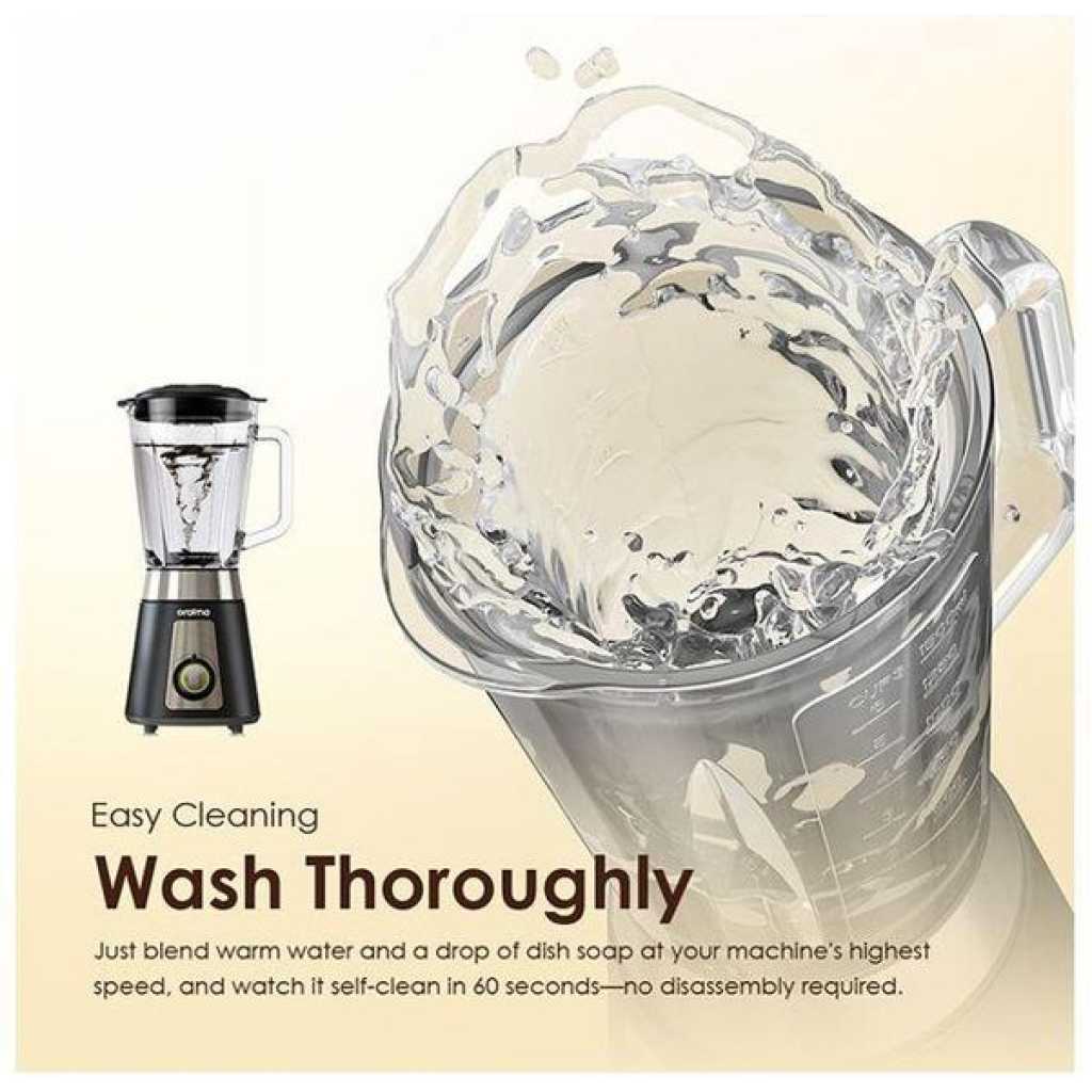 Key Features: 1.5L Glass Jar + Grinder Mill: Large capacity for family servings plus a pulse grinder for coffee, herbs, and spices. Powerful Ice Crushing: 500W motor and hardened stainless-steel blades blend ingredients quickly and smoothly. Durable Blade System: Heavy-duty stainless blades pull ingredients downward for consistent blending. 2-Speed Control: Choose the right speed for chopping, blending, or mixing different foods. Self-Cleaning Function: Blend warm water and soap for a fast 60-second clean. Non-Slip Base: Stable grip reduces vibration and noise during operation.