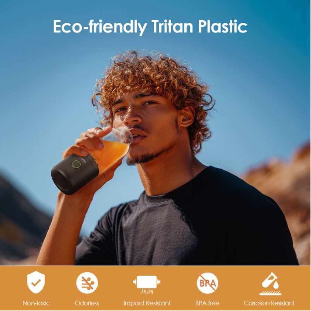 Key Features: 500ml Large Capacity: One bottle provides enough juice to keep you energized throughout the day. Durable Tritan Build: BPA-free, odorless, and eco-friendly material for safe daily use. Portable & Lightweight: Easy to carry and drink from anywhere. Powerful Blending Performance: Sharp 304 stainless steel blades and strong motors for smooth results in seconds. Ice Crushing Capability: High-speed rotation handles ice effortlessly for chilled drinks. Self-Cleaning Function: Simply add water and run to clean quickly and easily. Dual Battery Power: Two 2000mAh batteries ensure extended use on a single charge.
