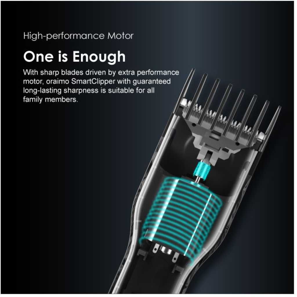 Key Features: Oraimo SmartClipper Cordless Hair Clipper With 1 Guided Comb OPC-CL10 – Black. High-Performance Motor Multi-functional Usage Ultra-quiet Design Type-C Charger