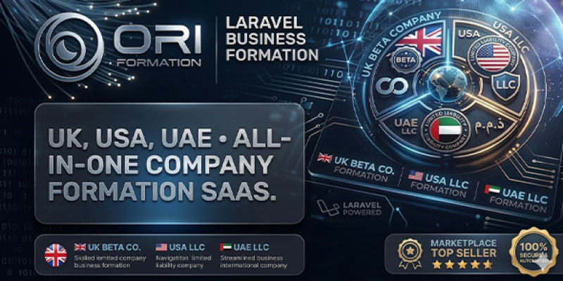 OriFormation - Business Formation Laravel Script. Complete UK, USA & UAE business formation and agency platform built with Laravel 10. Sell service packages with ease.