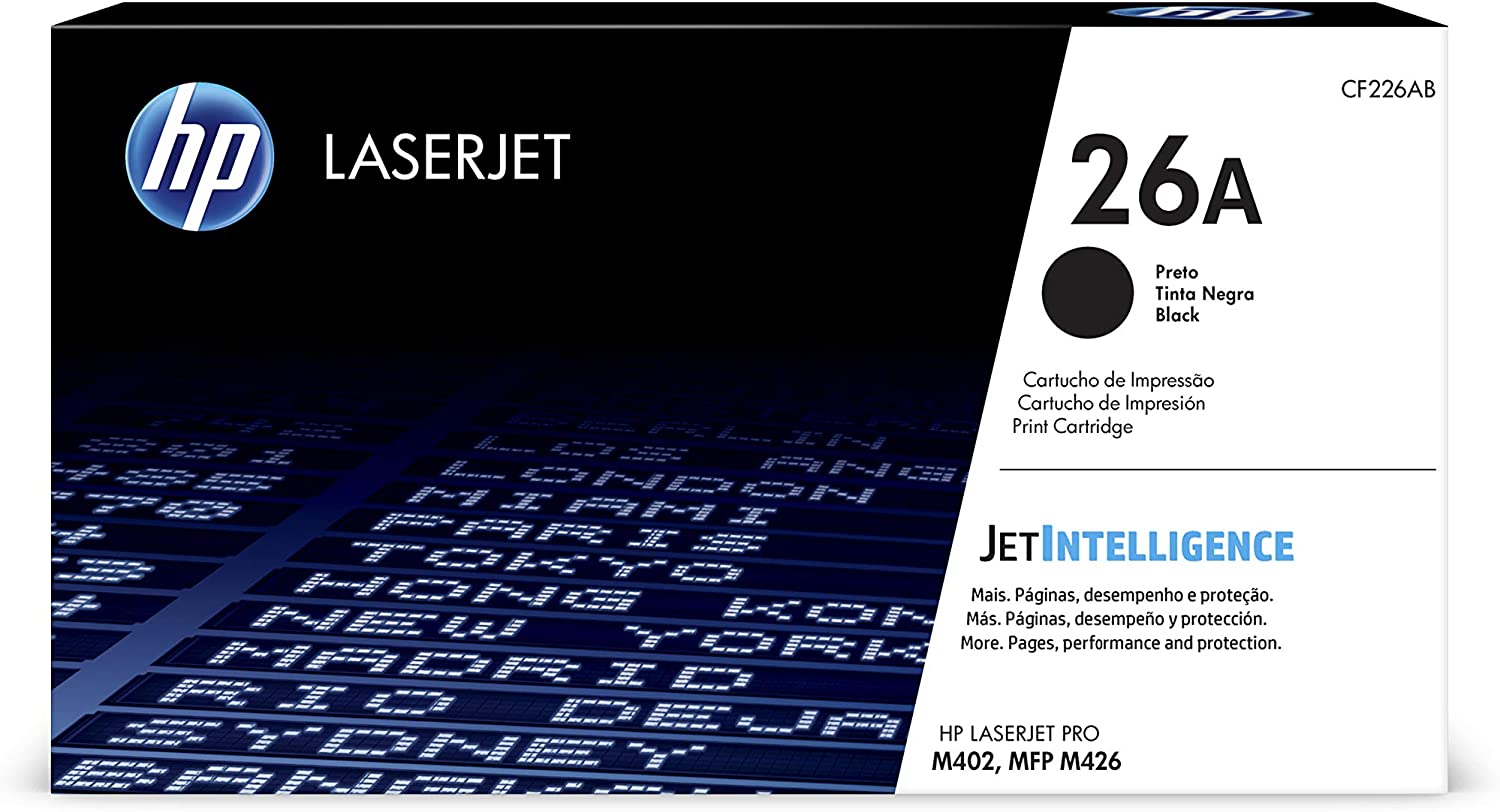 Key Features: Count on high-quality, reliable printing and save time by avoiding common printing problems: Original HP Toner provides the printing experience crucial for office productivity This cartridge works with: HP LaserJet Pro M402dn, M402dne, M402dw, M402n; HP LaserJet Pro MFP M426fdn, M426fdw Cartridge yield (approx.): 3,100 pages Use Original HP Toner Cartridges to eliminate toner leaks and premature failures Buy sustainable—100% of Original HP Toner Cartridges contain recycled content Help protect your printer from malicious code and maintain the integrity of your data with Original HP’s tamper-resistant chips, firmware and packaging Original HP Toner is committed to office air quality—HP voluntarily designs and tests its printing systems to meet eco-label emissions guidelines What’s in the box: 1 new Original HP 26A Black Toner Cartridge (CF226A)