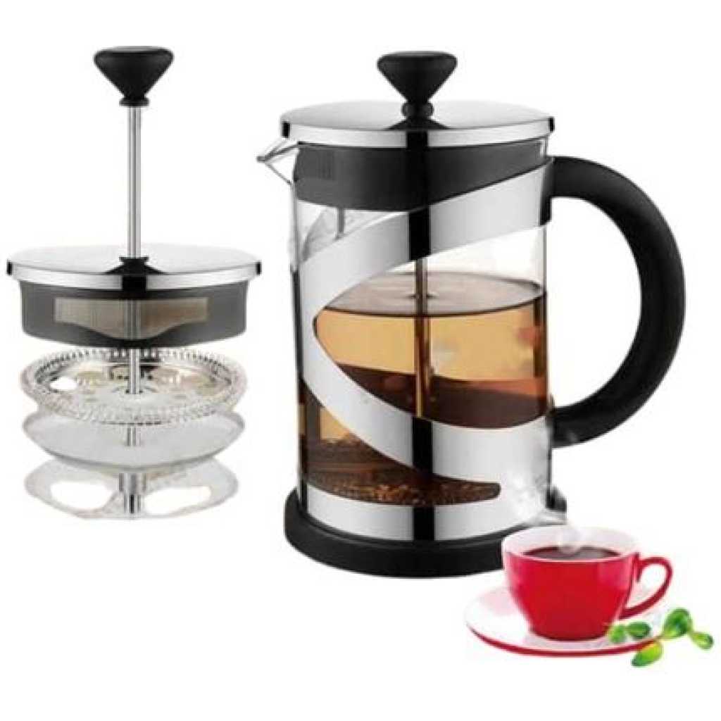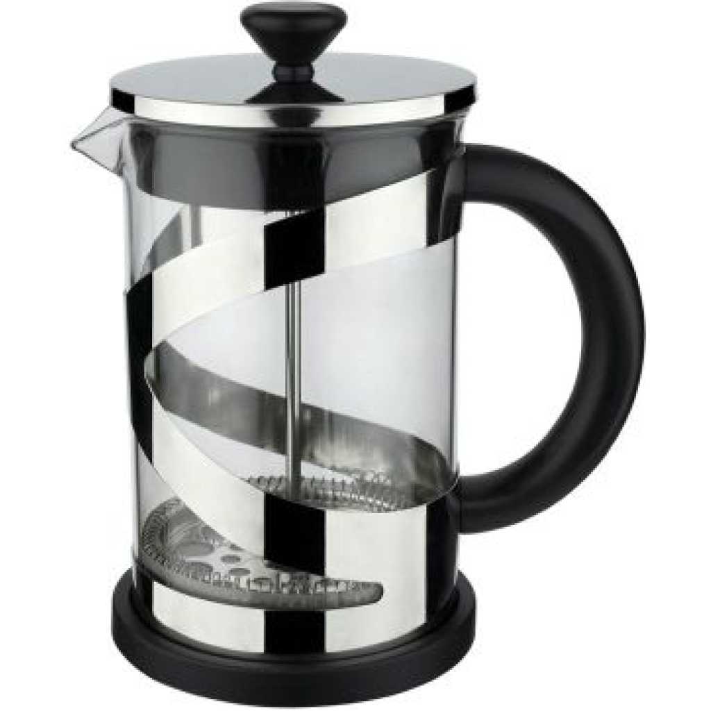 No More Cloudy Coffee ˜… We Have Fitted A High Quality Metal Filter On This French Press Coffee Pot That Leaves Little To No Grinds In Your Brew, Creating The Perfect Cup Of Tea Or Coffee In Under 4 Minutes.˜… Built For Durability ˜… This French Coffee Press Features An Extra Tough Heat Resistant Borosilicate Glass Carafe That Does Not Break As Easily As The Others, And High Grade 18/8 Stainless Steel Components That Keep Rust At Bay.˜… Sleek and Timeless Design ˜… This Personal French Press Has That Classic Coffee Maker Appeal, With Highly Polished Stainless Steel Accents Making It A Memorably Beautiful Gift For Any Coffee Lover.˜… Ample Capacity ˜… The 800Ml Capacity of This French Press Stainless Steel and Glass Coffee Machine Allows You to Brew Up To 6 Cups in Just One Pressing. An Ultra-Smooth Plunger Mechanism Makes For Effortless Use. Product Description:BPA-free, lightweight and durable kitchen equipment and accessories that help you enjoy your healthy drinks anytime and anywhere with minimum effort. Now make different tea and coffee-based beverages with the help of this multipurpose coffee press.