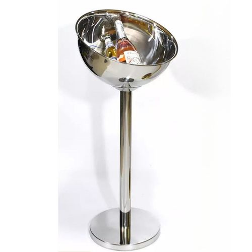 Outdoor Floor 12L Beer Champagne Wine Ice Bucket With Holder For Party- Silver. Chill your wine or champagne tableside with this elegant wine stand set. Constructed of stainless steel, this pair gleams with a mirror finish that makes the pipe-style stand and attractive ice bucket radiate with style and class. Ideal for keeping your favorite white wines on ice during dinner, this attractive champagne stand also makes the perfect pedestal for showing off your finest bottles of champagne during parties and special occasions. Stand assembly required, Stand Dimensions: 34″H from floor to bucket top, and Bucket Dimensions: 8 1/2″H x 8″W.