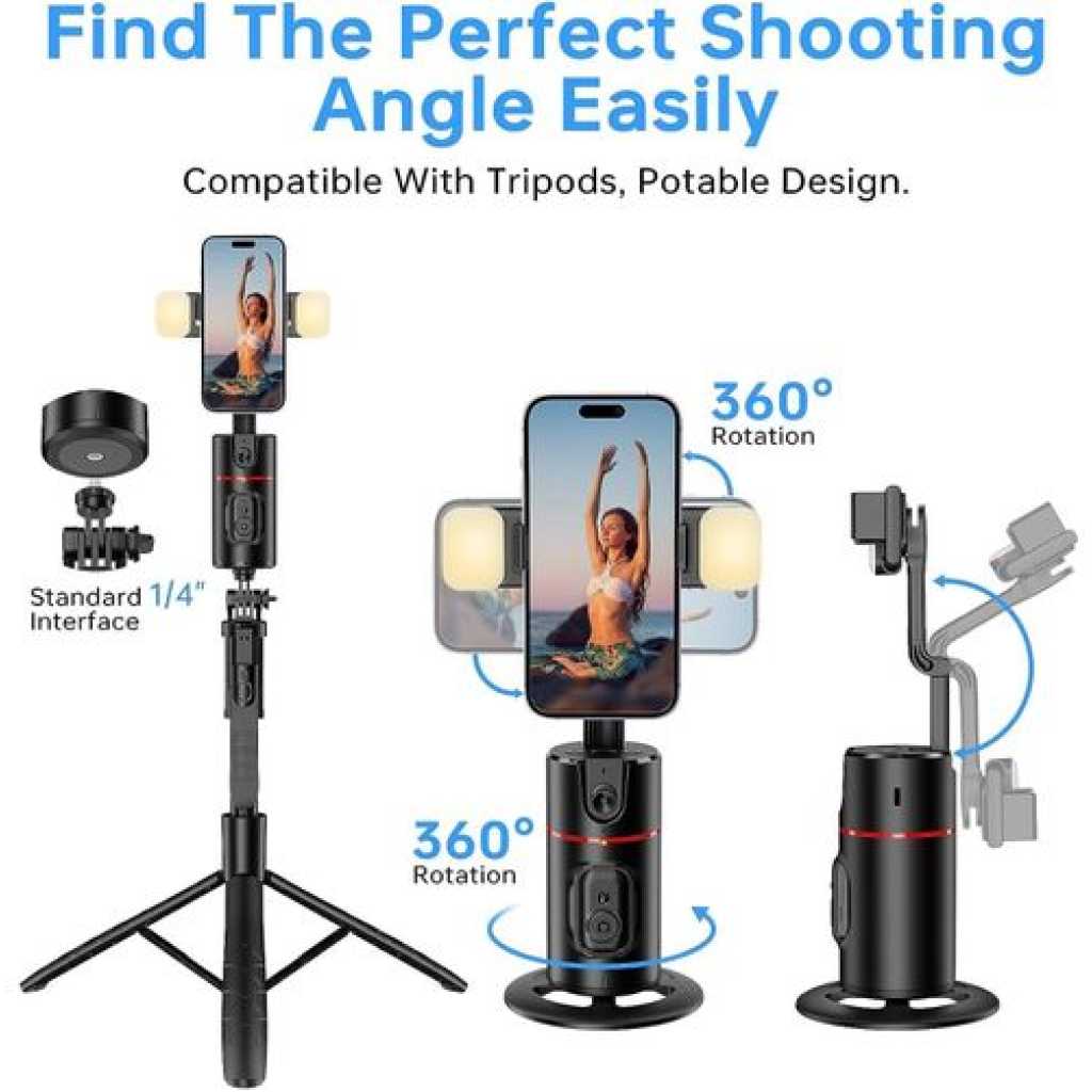 Key Features: Compatible with detachable dual fill lights (lights not included), providing you with additional lighting options for your photography needs. Compatible with a 1/4-inch screw interface tripod (tripod not included), allowing you to attach it to a tripod for added stability and versatility. Enjoy the flexibility of adjusting the lens position of the P02, allowing you to easily achieve the desired framing and composition for your shots. Whether you need to capture a high-angle or low-angle perspective, this feature makes it convenient and effortless. The P02 comes with a built-in wireless remote control, allowing you to control the selfie stick remotely. The phone holder of the P02 allows for 360° horizontal and vertical shooting, as well as 180° front and rear shooting capabilities. Capture your moments from any angle. Powered by the advanced AI chip algorithm from iFlytek, the P02 delivers true intelligent tracking capabilities, ensuring precise and reliable performance. The P02 also offers intelligent gesture recognition, enabling you to control various functions with simple hand gestures. The phone holder of the P02 is detachable, allowing for easy installation and removal of your smartphone. The P02 eliminates the need for additional app installations. Simply connect your smartphone to the selfie stick and start capturing photos and videos right away. The P02 features intelligent 360° facial recognition, ensuring it accurately tracks your face as you move.