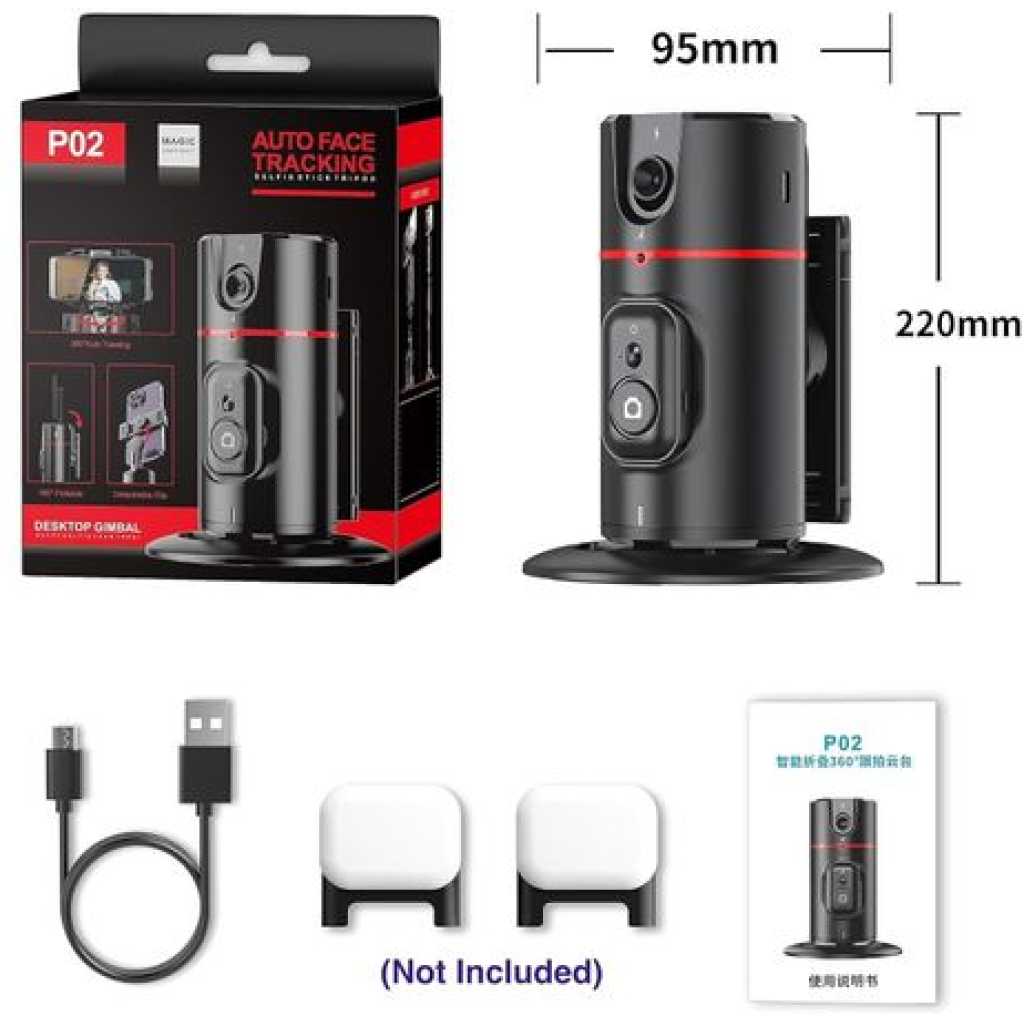 P02 AI Intelligent Tracker 360° Rotating Auto Face Tracking Phone Mount Stand with Fill Light Smart Rotation Desktop Selfie Gimbal Stabilizer for Smartphone Tripod for TikTok Live Streaming & Vlog, Sm