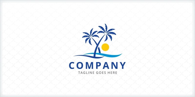 Palm Tree Beach Logo Template. The logo incorporating palm tree, sun and wave , suitable for travel and restaurant.