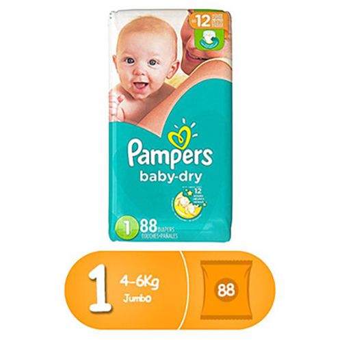 3X drier than ordinary diapers! Pampers Baby Dry diapers are 3X drier than an ordinary diaper, so your baby can sleep soundly all night. That’s because Baby Dry diapers have 3 layers of absorbency vs. only 2 in an ordinary diaper, so your baby can get up to 12 hours of overnight protection. Grab this deal and more at unbeatable prices with doorstep delivery. Key Features: Diaper Size: 1 Baby Weight: 4 – 6Kg Pack Count: 88pcs Extra soft and secure Up to 12 hours protection