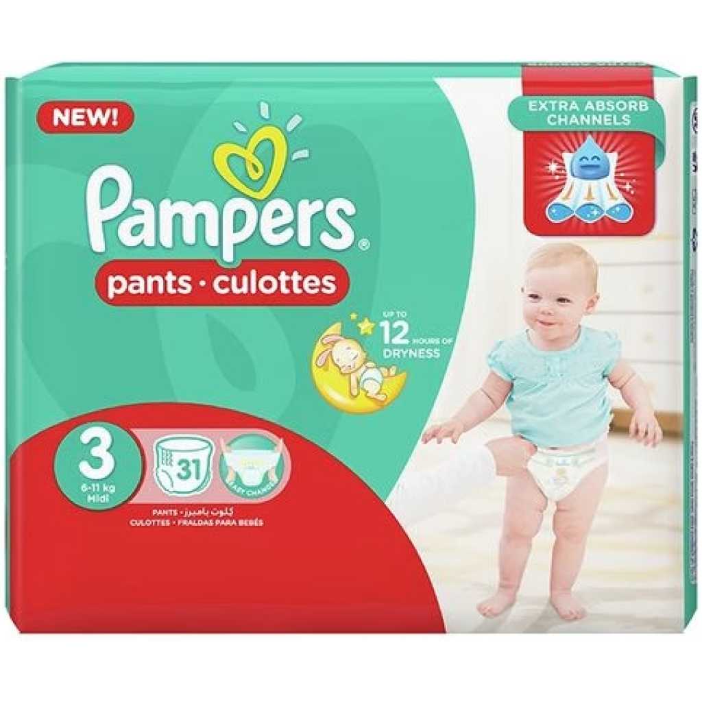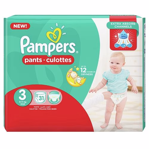 A great night’s sleep means a good morning mood. Introducing new easy put-on Pampers pants for boys and girls. Order your Pampers Pants – in a Great Value Pack from TilyExpress online and have it delivered straight at your doorstep. The only brand to feature an extra Sleep-Layer, they quickly absorb wetness and spread it evenly across the core. Giving your baby up to 12 hours of dryness for more fun and happy mornings. Pampers locks the wetness away from your baby’s skin thanks to its Micro Pearls™ located in the core of the diaper that absorb up to 30 times their weight. Two Dry-zones that quickly absorb liquids and lock them away from your baby skin. Stretchy waistband and leg cuffs adapt to baby shapes and movements for a perfect fit in all positions Key Features: Diaper Size: 3 Baby Weight: 11 – 16Kg Pack Count: 31 Extra soft and secure Up to 12 hours protection Day and night comfort