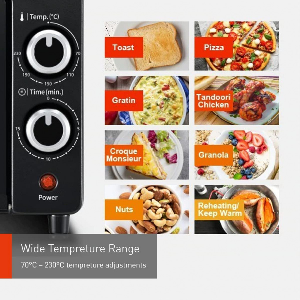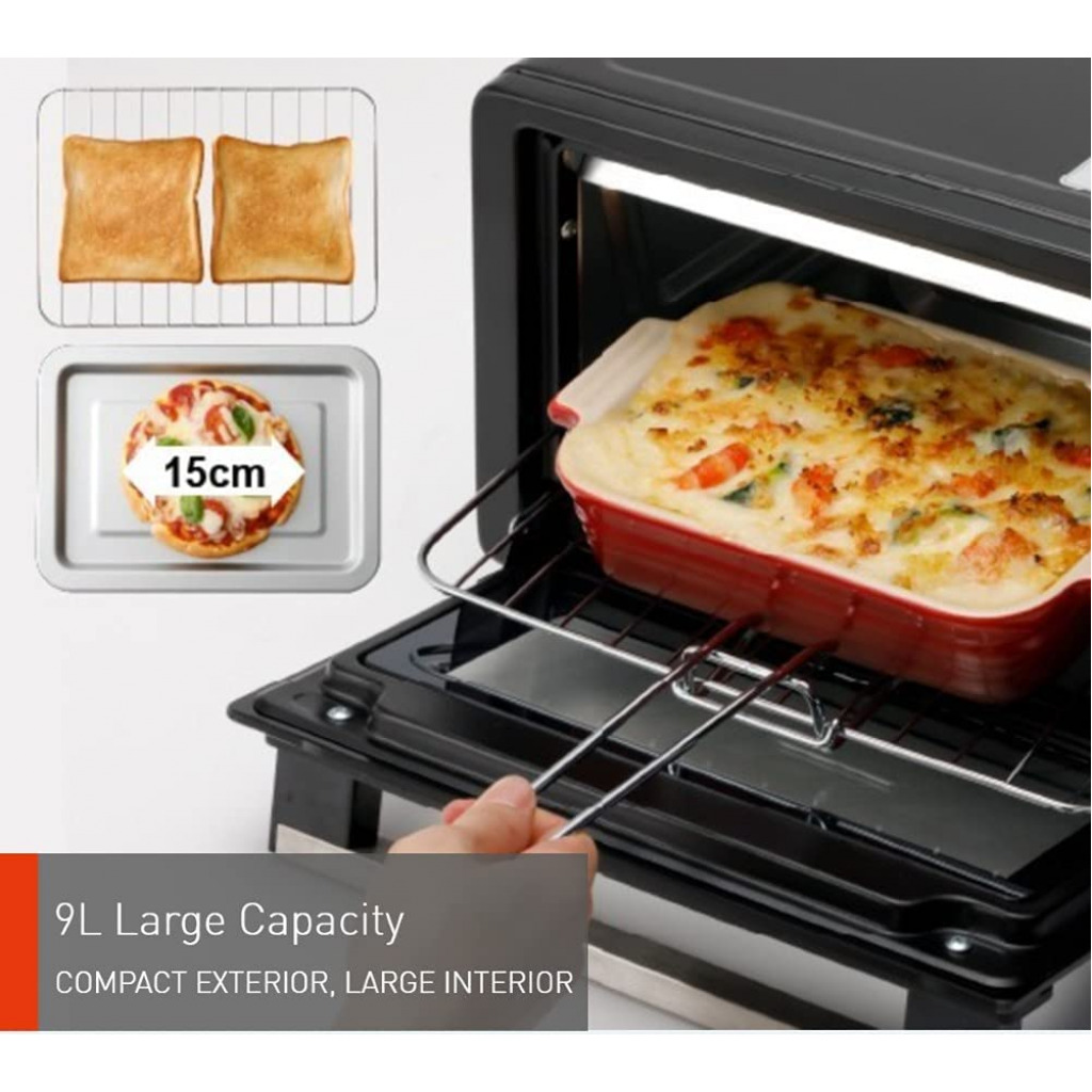 Panasonic 9L Double Glazed Glass Toaster Oven With Upper & Lower Heaters, Toaster Oven For Baking & Toasting With 70°–230°C Temperature Control (Model Nt-H900) Just a toaster? No, it’s a Compact Oven You can enjoy a wider variety of delicious meals more than ever. Key Features: Panasonic 9L Double Glazed Glass Toaster Oven With Upper & Lower Heaters, Toaster Oven For Baking & Toasting With 70°–230°C Temperature Control (Model Nt-H900) The upper and lower heaters provide stable and even heat coverage in the compact oven for cooking quick and easy meals 70–230°C wide temperature control which allows you to cook different dishes like an oven The 9L large capacity is ideal for quick cooking during busy mornings Heat installation and protection – the double glazed glass door made of thin, durable high heat-insulating glass which reduces temperature fluctuation for stable and ideal cooking results The heat resistant handle is designed with double layers to prevent accidental burns when opening and closing the door