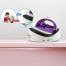 This cordless iron will make ironing smooth, effortless and fun. You can move it freely without worrying about the cord. Refresh your favorite clothes swiftly, and enjoy the feel of dressing neatly. With the Multi-Direction Soleplate, you can glide it in any direction. Get the full freedom of movement and efficient ironing for all parts of the clothes. Hot plate rests stably on the power base. It reduces the chance of burning your fingers or falling off the board, compared to the conventional design. Power & Vertical shot gives a blast of steam to blow off stubborn wrinkles. Detachable water tank for easy and safe water filling. The capsule inside the water tank prevents lime scale from clogging the steam vents, maintaining enough steam for a long time. Cordless steam Iron, 1550W,Analogue Control,Multi-Direction silver Titan Soleplate,Anti-Drip,