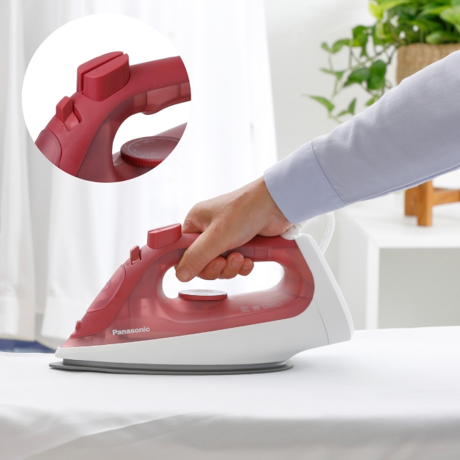 Key Features: Panasonic Steam Iron 2300W, Anti Calc Titanium Coating Spray + Vertical 100g Power Shot Steam NI-S430 – Red. Powerful steam from the entire soleplate with U-shape groove ◼ 2300 W high power input ◼ Quick wrinkle removal with Power and Vertical Shot ◼ Smooth, stable glide with ergonomic grip and low-height design ◼ Large capacity 300 mL water tank for bulk-ironing ◼ Durable, smooth sliding silver titanium soleplate