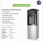 Panasonic Water Dispenser SDM-WD3238, Top Loading, Hot, Cold & Normal With Child Safety Lock – Silver, Black Top loading design. Hot, Cold & Normal Water options. Child Safety Lock. Overheat Protection. Multi Frequency, 20 Liter cabinet. Anti-Fingerprint stainless steel door for the cabinet. Stainless steel for Hot & Cold water tanks. Unit Dimension: 310 (W) x 360 [D] x 1000 [H] mm. Finish: Black & Stainless Steel.
