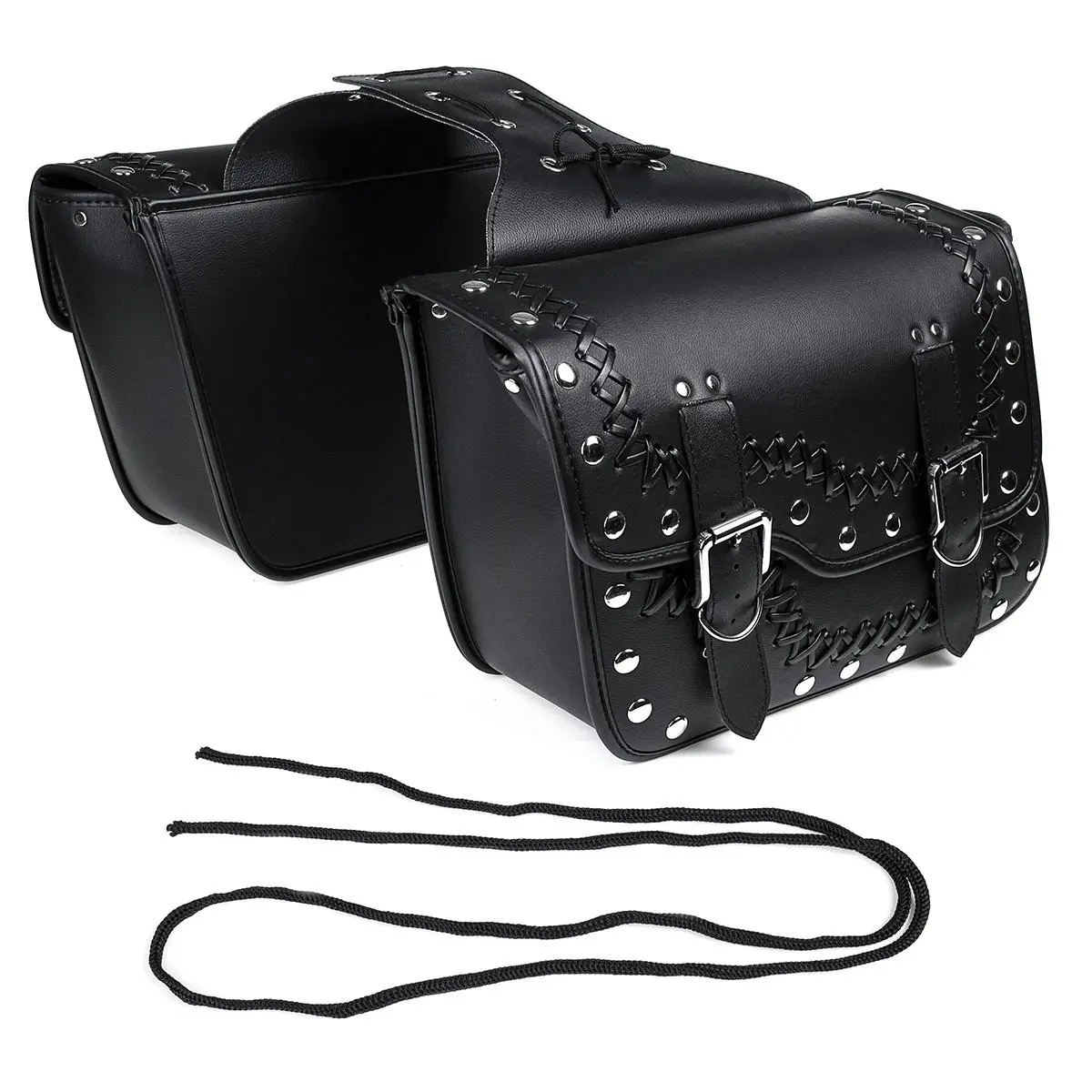 Par Motorcykel PU Læder Sadeltasker Sideværktøjskasse Bagage Til Harley Chopper
