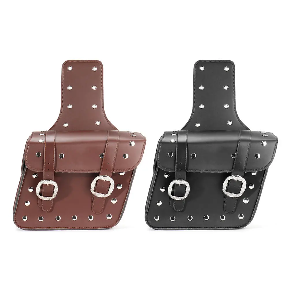 Par Sort/Brune Motorcykel Universal PU Læder Sidesaddelposer med Kedel Taske