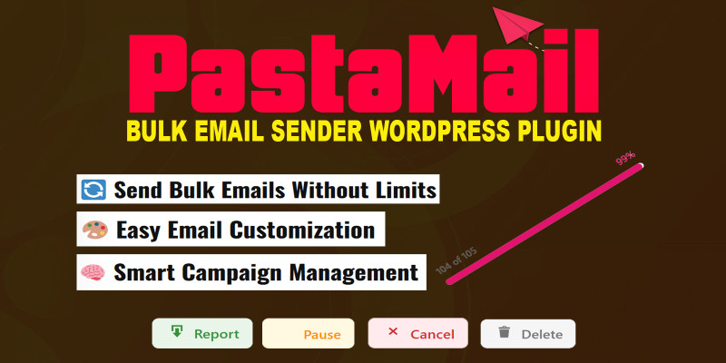 PastaMail - Bulk Email Sender WordPress Plugin. PastaMail – Send bulk emails easily from WordPress with your own branding, SMTP support, and campaign tracking.