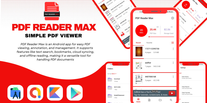 PDF Reader MAX - Android App Template. PDF Reader Max is an Android app for easy PDF viewing, annotation, and management. It supports features like text search, bookmark