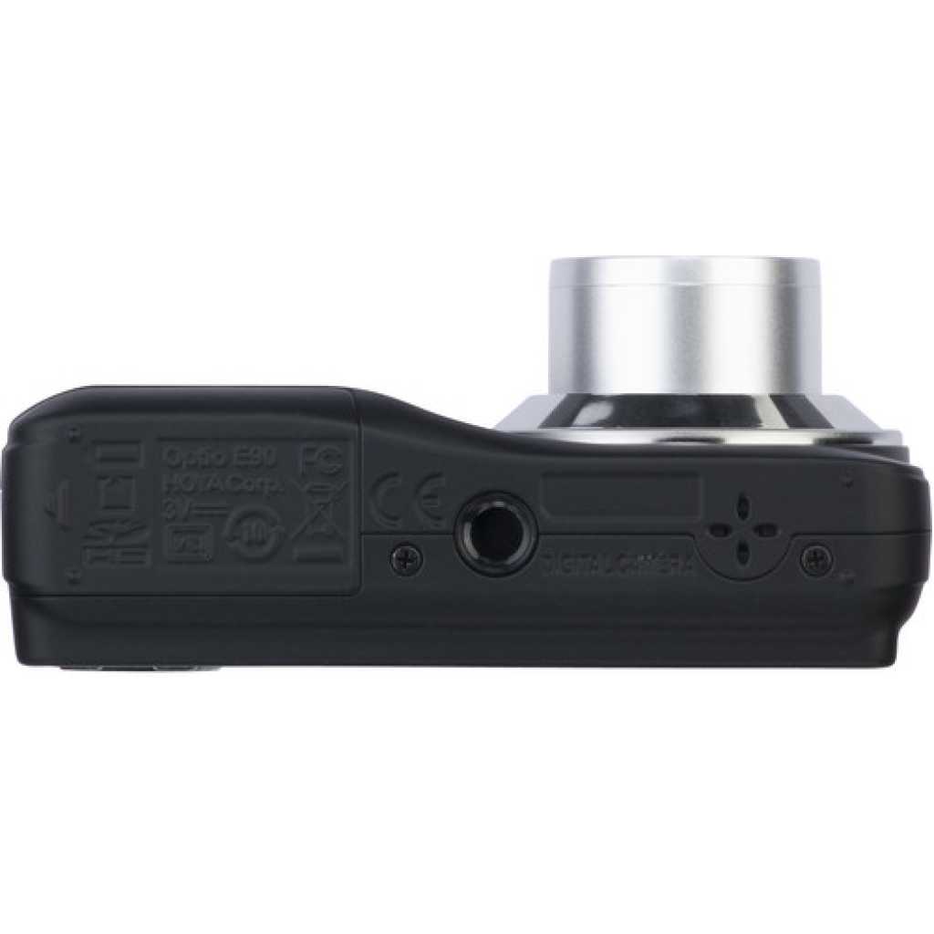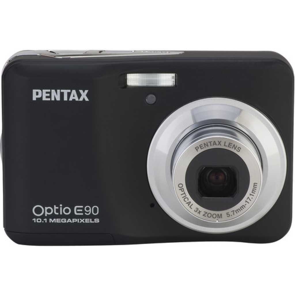 Key Features: Pentax Optio E90 Digital Camera (Black). 10.1 Megapixels 2.7″ LCD Simple Operation Uses AA Batteries 3x Optical Zoom Lens Sure Grip Construction High Sensitivity (ISO 1600)