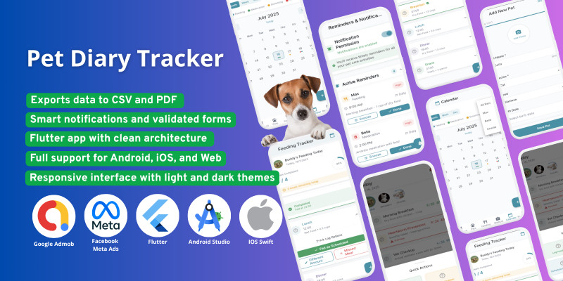 Pet Diary Tracker And Reminder App - Flutter. Pet Diary Tracker is a comprehensive Flutter application designed for pet owners to manageevery aspect of their pet's life