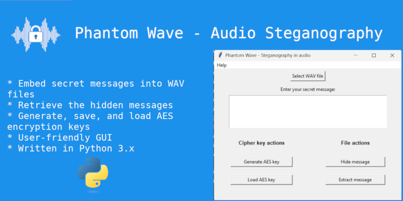 Phantom Wave - Audio Steganography App. A simple audio Steganography app written in python