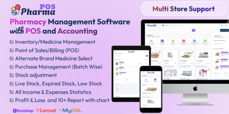 Pharma POS - Pharmacy Management Software with POS. Pharma POS is an advanced and user-friendly Pharmacy Management System built with Laravel.