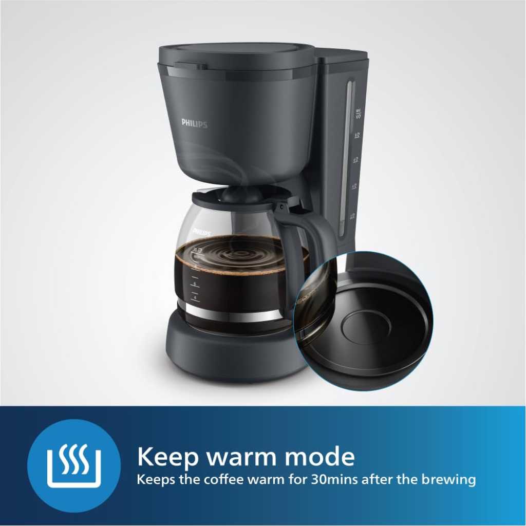 Philips 1000 Series Drip Coffee Maker With Up To 10 Cups Of Coffee,Keep Warm Mode For Long-Lasting Hot Coffee,Auto Shut-Off For Safety,Drip Stop To Pour 1.2 L 1000 W HD7430/90 Black