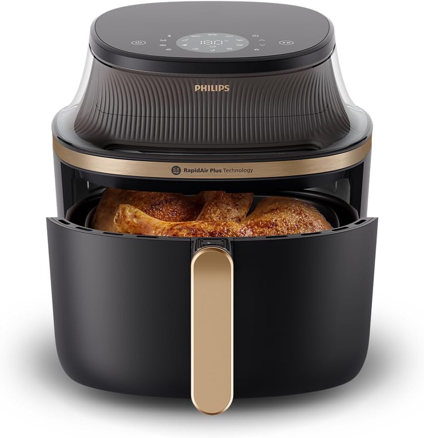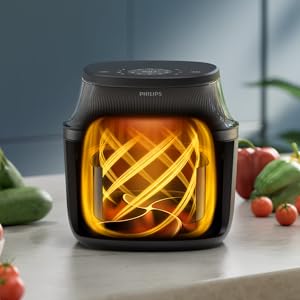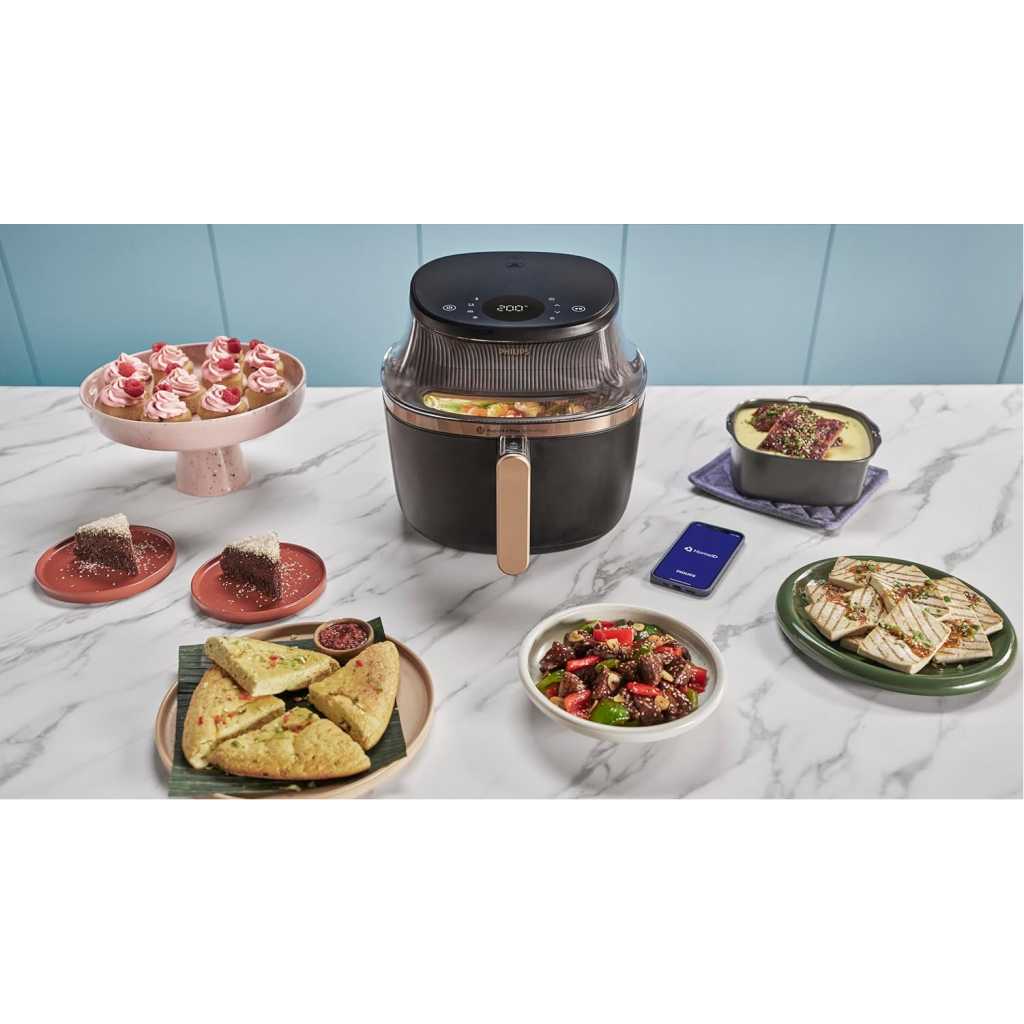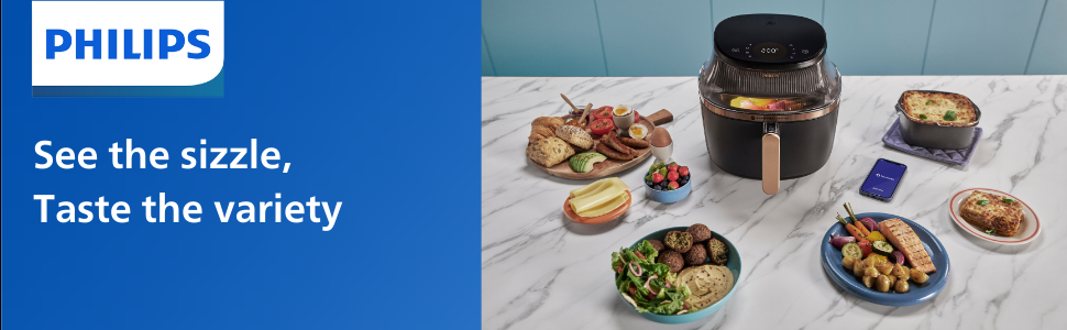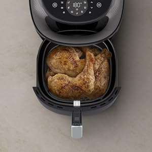 From the manufacturer Key Features: RAPIDAIR PLUS TECHNOLOGY: Enjoy delicious food with up to 90% less fat. Patented RapidAir Plus Technology with unique star-shaped design circulates hot air around and through the food with faster airflow, ensuring even cooking inside and outside to create tasty homemade meals. COOKING WINDOW: No more guessing. Watch while you cook and see when it’s done to perfection. 6.2L CAPACITY: Enough capacity for your all family meals. Holds up to 1000 grams of veggies; 8 chicken drumsticks; 5 pieces of salmon or 7 muffins. 16 IN 1: Cooking possibilities from baking and grilling to defrosting and reheating. Settings go as low as 40℃ and as long as 24 hours for dehydrating and fermentation, too. FAT REMOVAL: Up to 40% of excess fat drips away for healthier meals with full flavor. The basket keeps food separate from the fat collected in the pan as it cooks.