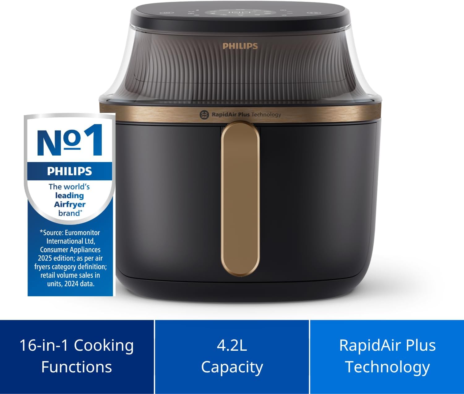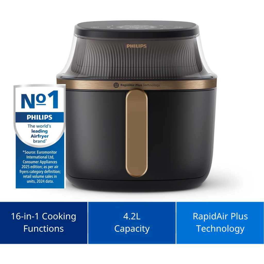 Philips Airfryer XL - 6.2L, 1700W, See-through Cooking Window, 16 Cooking Functions, Touchscreen, RapidAir Plus Technology, Black - NA332/09