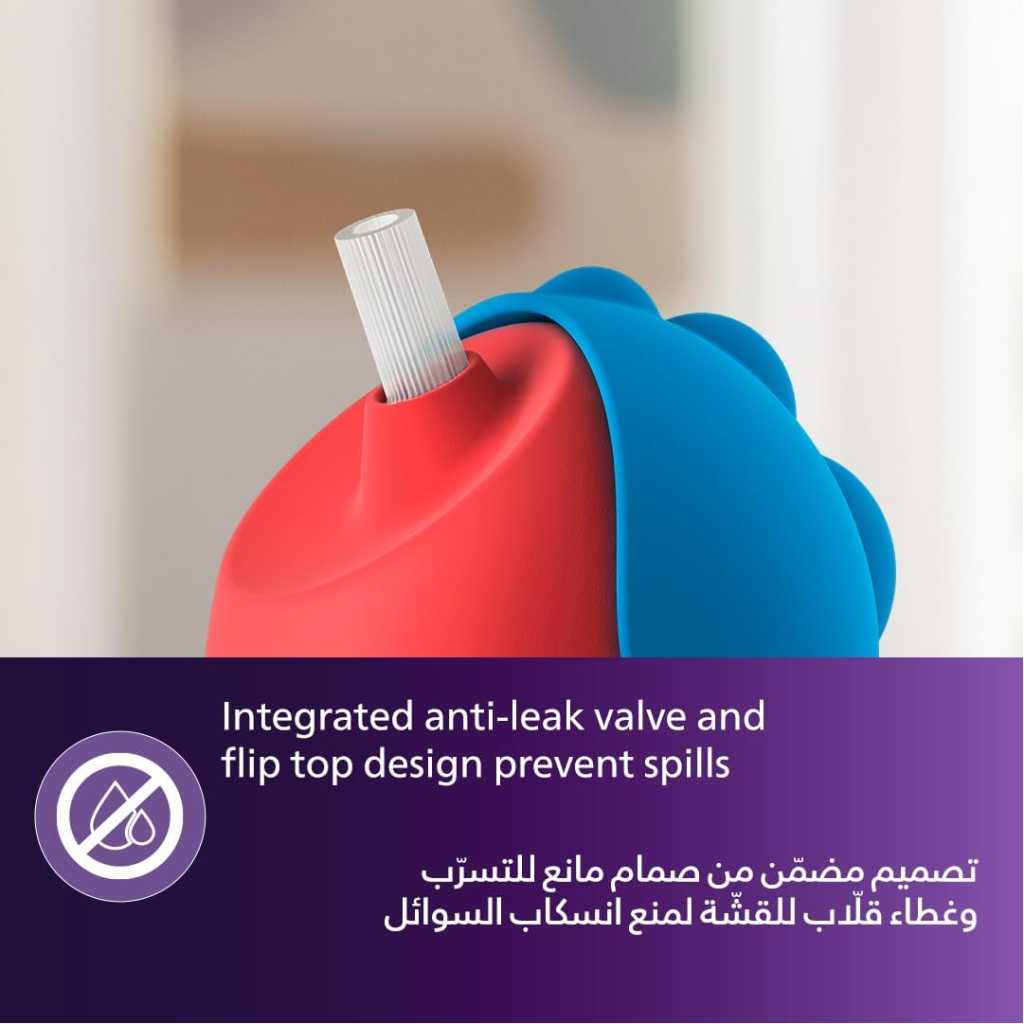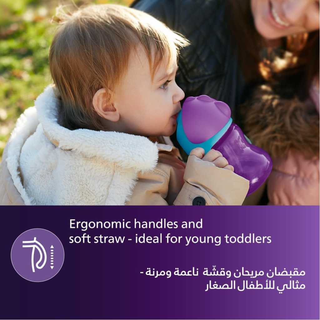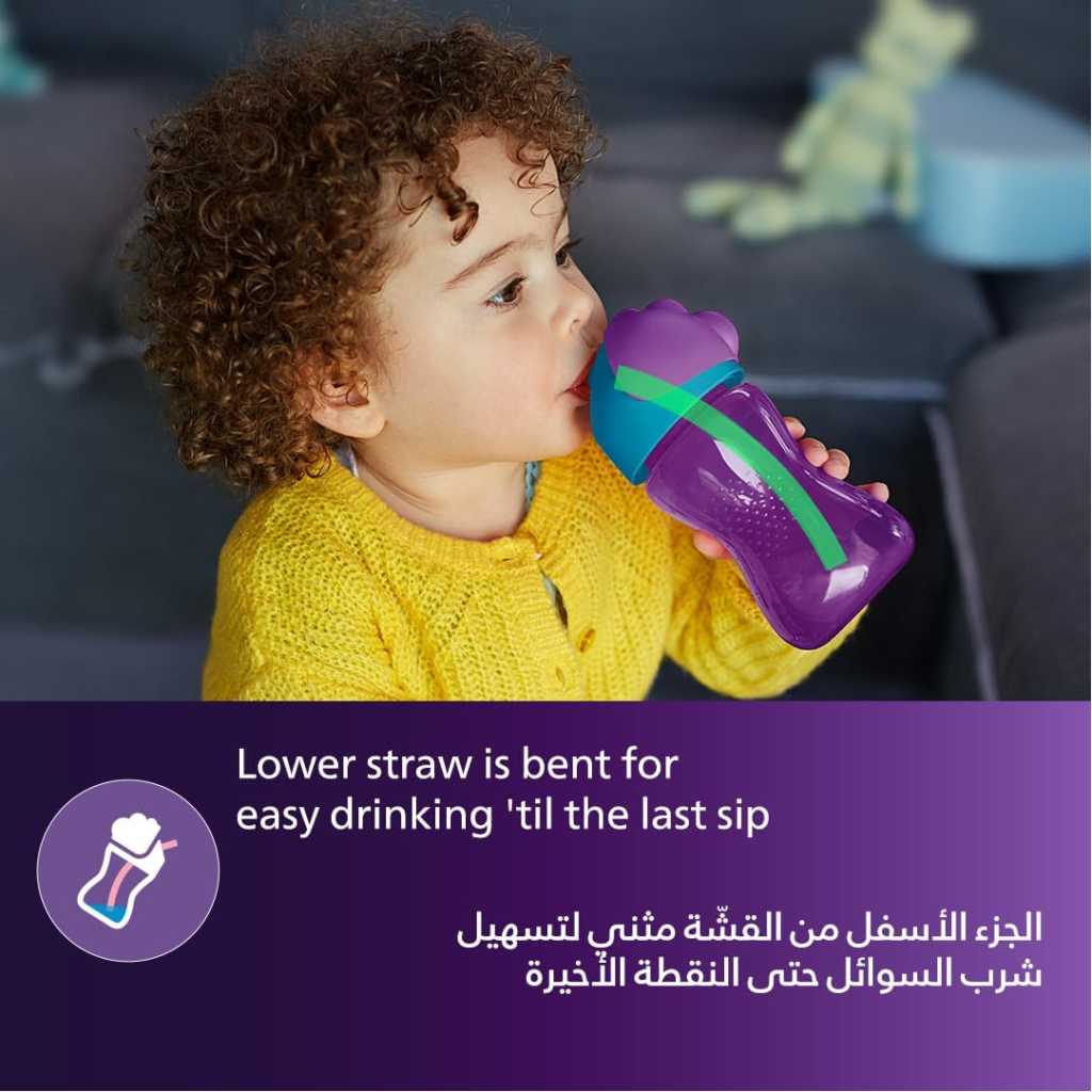Key Features: Lower straw is bent for easy drinking till the last sip The straw has an integrated anti-leak valve to prevent spills, the flip top protects the straw and prevents leakage on the go Integrated anti-leak valve and flip top design prevent spills Philips Avent cups follow the development of your child Few parts – easy to assemble and clean dishwasher safe Philips Avent cups follow the development of your child Healthy oral development The Philips Avent Bendy straw cup is made from completely BPA free materials The cup’s integrated handles are ergonomically designed, making it easy for little hands to hold the cup, the soft flexible straw is gentle on gums while the cup’s lightweight small size is ideal for first straw sips