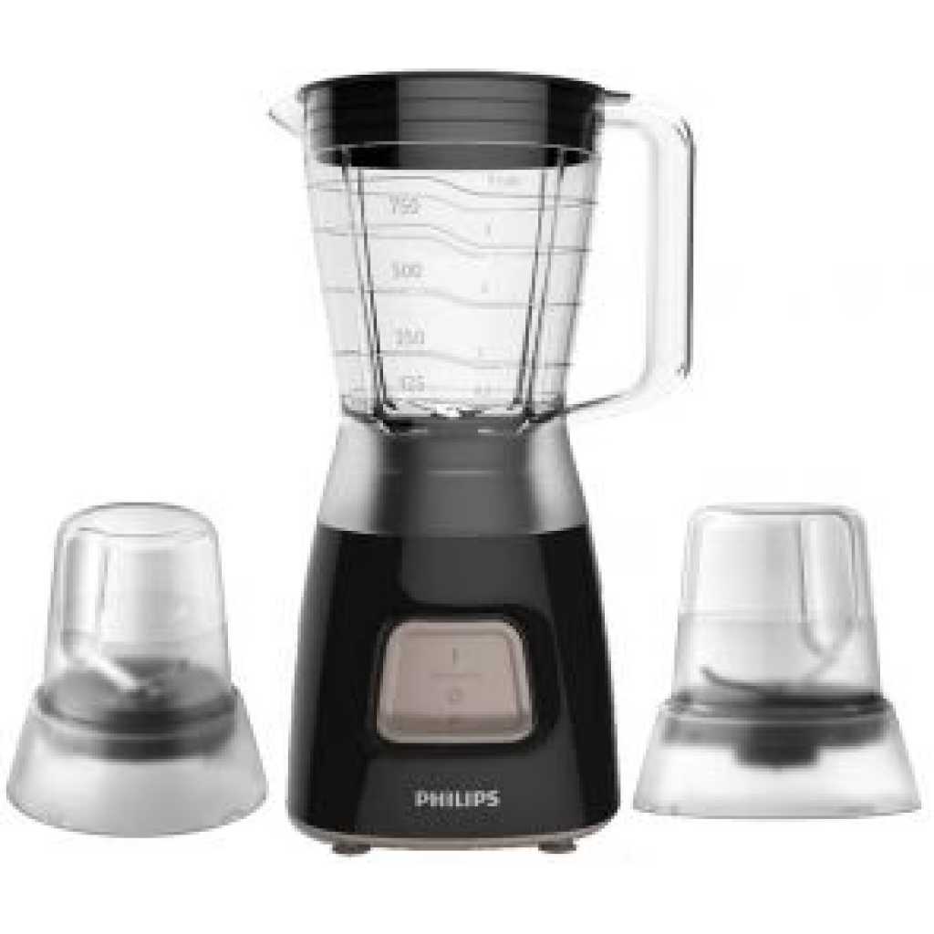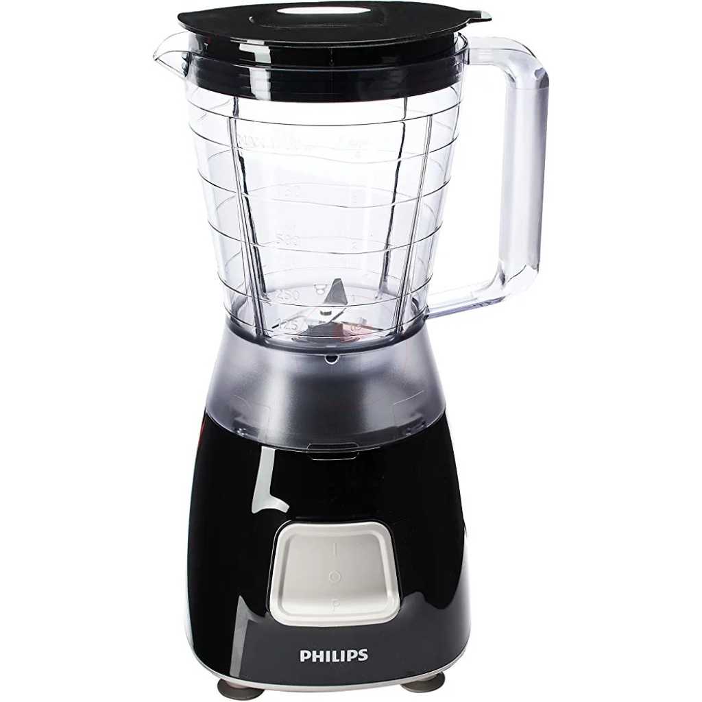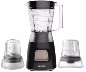 Only Philips offers you this reliable and long lasting blender with excellent performance to make silky smoothies, fine sauces, well grinded condiments and ice crushing Healthy Smoothies, sauces & ice crushing everyday With 450W and motor overheating protection 450 W 1.25 L Plastic jar 4 stars stainless steel blade with 2 mills Strong 450W motor for fine results Strong 450 W motor for fine blending. From morning smoothies, to sauces and ice crushing was never easier. Break-resistant plastic jar Avoid breakages with this reinforced plastic jar. The 1.5-liter jar has a working capacity of 1.25 liters. 4 stars stainless steel blade 4 stars stainless steel blade for effective blending and mixing. The newly designed blade will blend and cut soft and hard ingredients and make a perfect smoothies and sauces for you and your family. 1 Speed & pulse for both soft and hard ingredients like ice 1Speed for powerful blending and pulse for ice crushing. Intuitive knob for easy use Select “blending function” or “pulse function” with just one button Integrated power cord storage Save space with the handy cord storage system under the housing of the blender. All parts are dishwasher safe All removable parts can be cleaned in the dishwasher. With motor overheating protection Your Philips blender motor is designed to be protected from overheating and over-current conditions during use 2 MILLS TO GRIND MULTIPLE INGREDIENTS 2 mill accessories for no taste mix. Grind multiple ingredients like spices, nuts and coffee beans. COMFORTABLE THUMB GRIP HANDLE New handle with thumb grip position to hold and carry the jar easily Key Features: Break-resistant plastic jar 4 stars stainless steel blade 1 Speed & pulse for both soft and hard ingredients like ice Intuitive knob for easy use Integrated power cord storage All parts are dishwasher safe With motor overheating protection Strong 450W motor for fine results