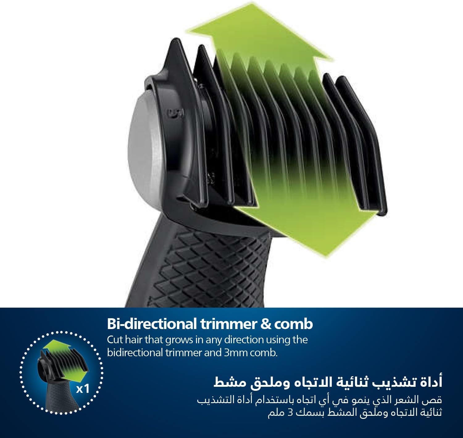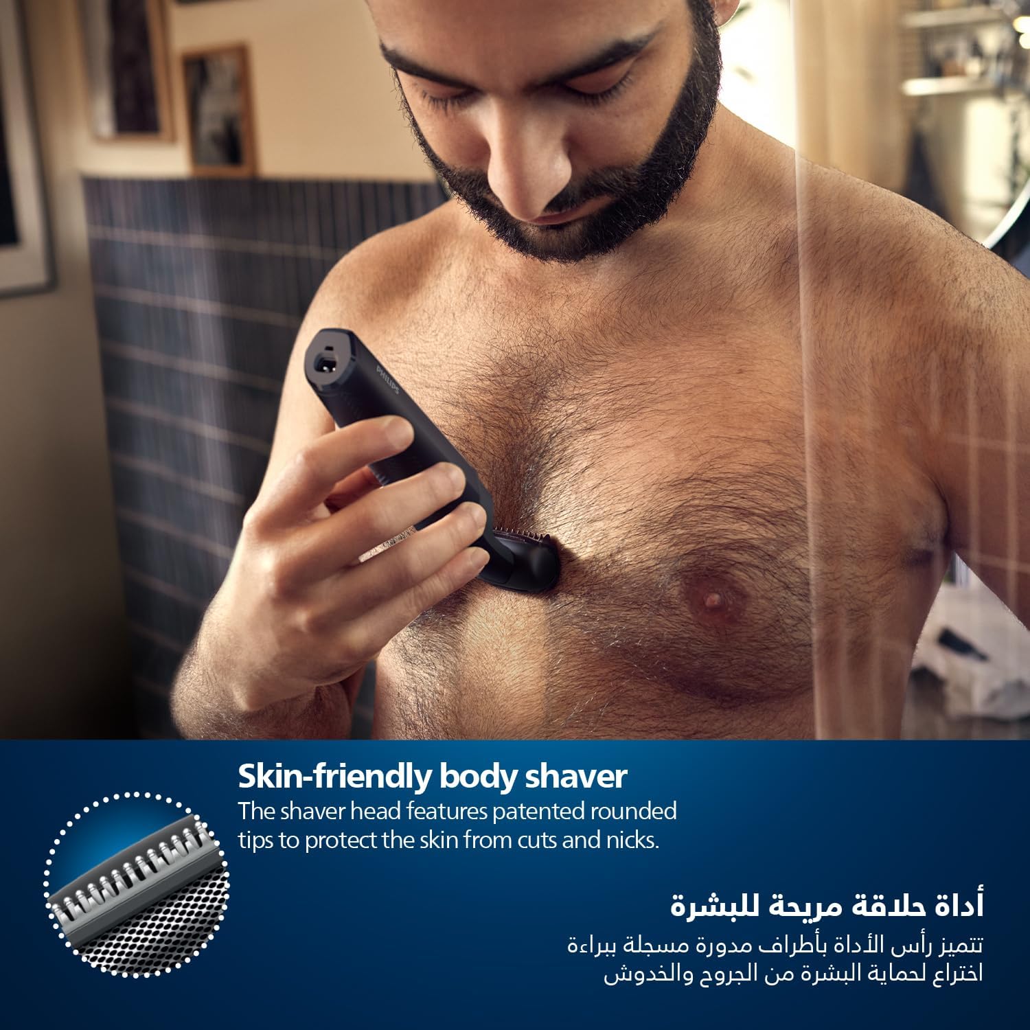From the manufacturer Key Features: Shaving with safety and comfort on your delicate skin Bidirectional trimmer and comb to trims in every direction 100% Showerproof body groomer 50 minutes cordless use Ergonomic grip for added grooming control