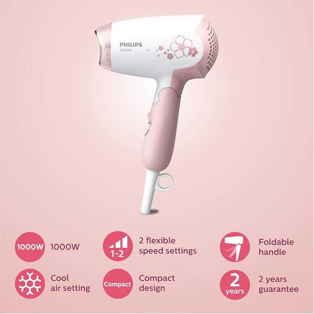 Philips DryCare Hair Dryer HP8108/00,1000 Watts 1.5M And 220/240 V, 2 Flexible Speed Settings, Foldable Hand, Cool Air Setting, Compact Design, Peach