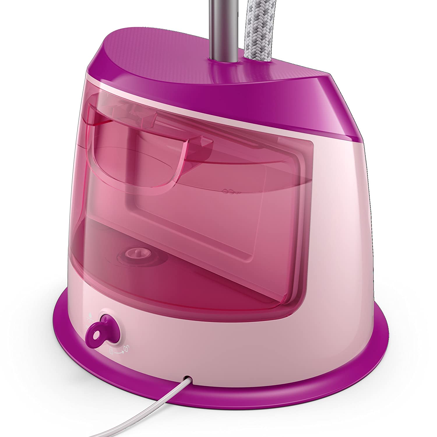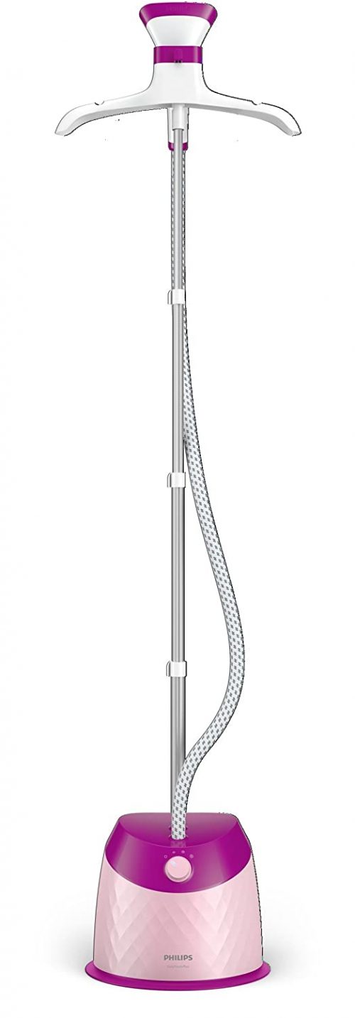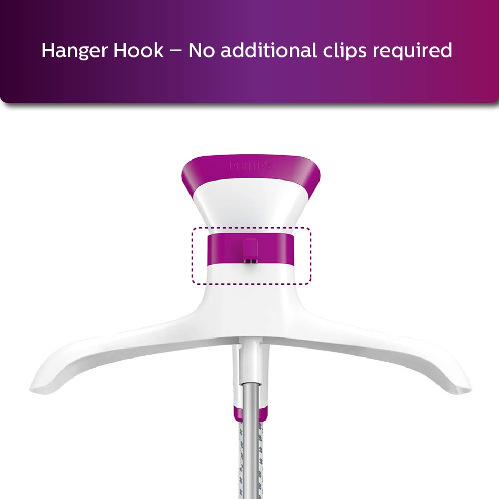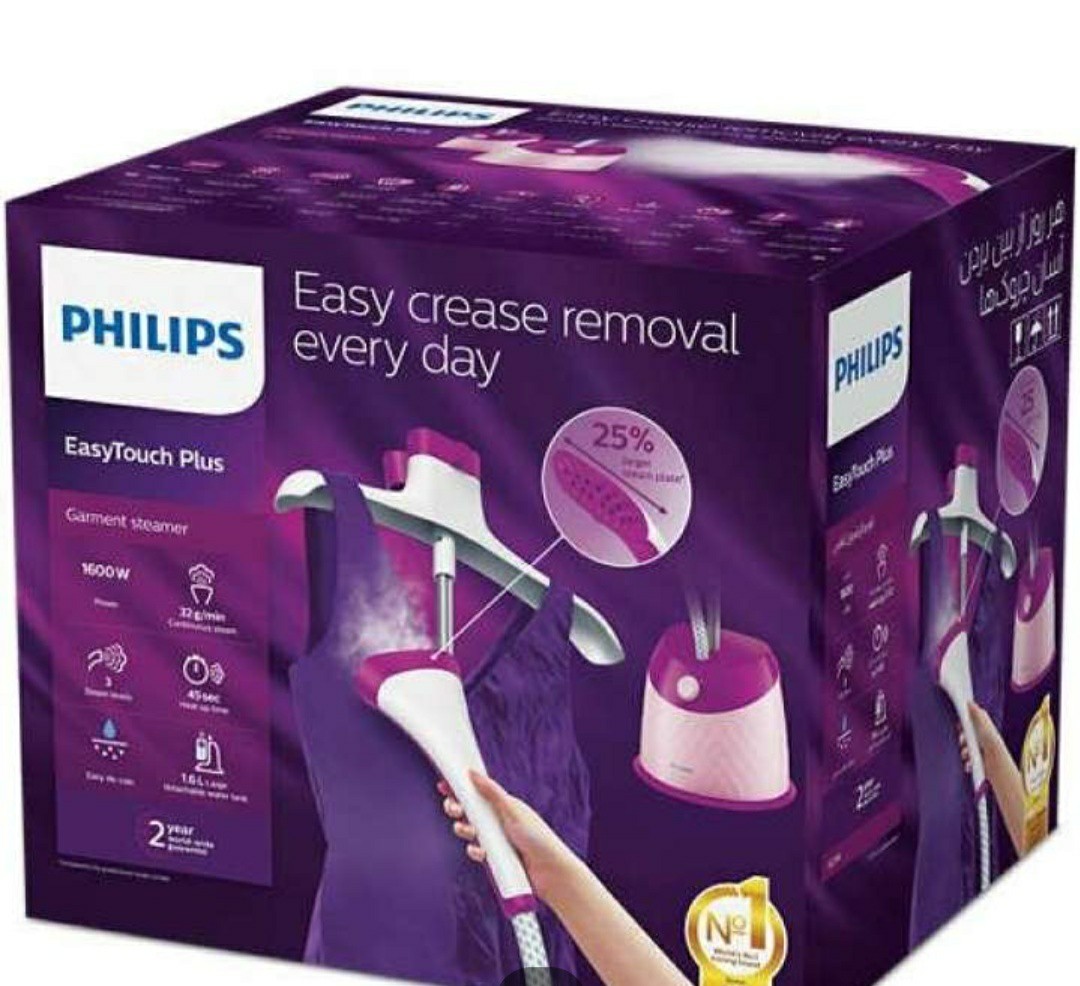 Easy crease removal every day thanks to essential steaming solutions Philips easy touch plus garment steamer is designed for easy crease removal every day. With a wide range of essential steaming solutions, it is a perfect appliance for quick touchups, delicate and difficult to iron clothes. More efficiency, less effort, cover more in one stroke with 25 percent larger steam plate, 3 steam levels for different kinds of fabric, special garment hanger, adjustable pole for various height settings easy crease removal, powerful continuous steam for efficient wrinkle removal, large detachable water tank for easy refill anytime reliable and safe to use on all garments, glove for extra protection during steaming, easy de-calc function for longer product lifetime.