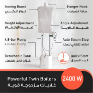Key Features: 25 percent larger steam plate Powerful continuous steam Special garment hanger 3 steam levels Large detachable water tank Easy de-calc function Adjustable pole