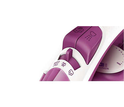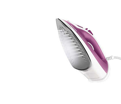 Iron 30% faster with steam* Steam 18 g/min 65 g steam boost Non-stick soleplate Calc-clean Key Features: Non-stick soleplate coating Steam 18 g/min 160ml water tank 65g steam boost Calc-clean 2-year warranty