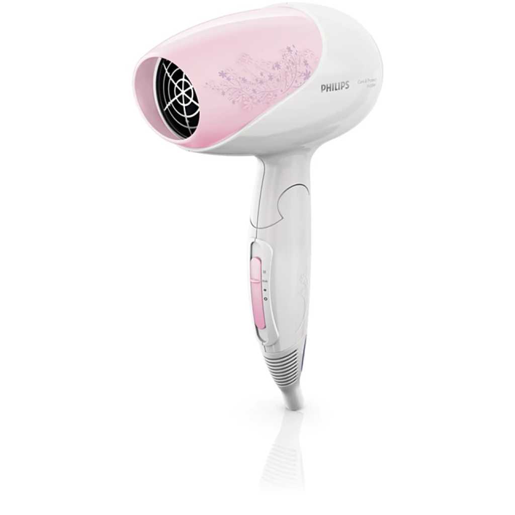 Key Features: Philips Hair Dryer HP-8117, 1400W Foldable Quick & Gentle Drying, ThermoProtect Temperature Setting, Three Flexible Settings For More Control, Compact Design With Integrated Nozzle For Efficient Drying, Foldable Handle For Easy Handling Foldable handle for easy portability Compact design for easy handling Three flexible settings for more control Integrated nozzle for more efficient drying Cool air setting for gentle drying Thermo Protect temperature setting