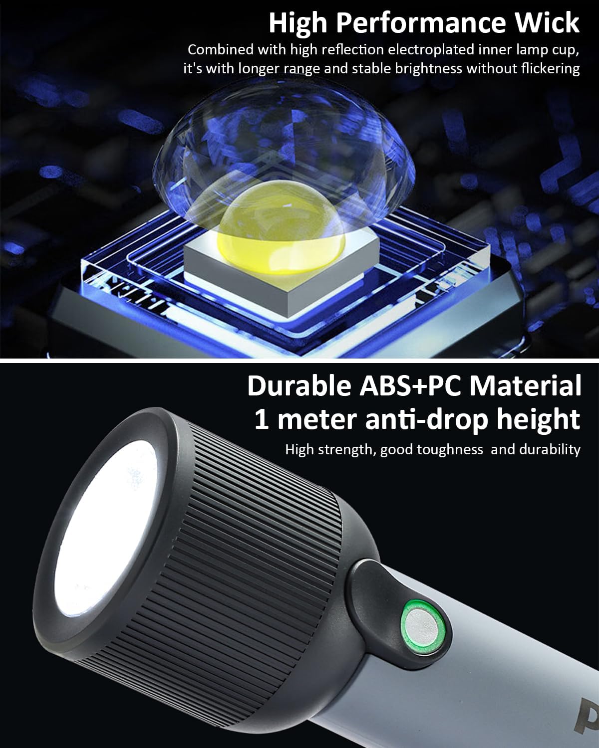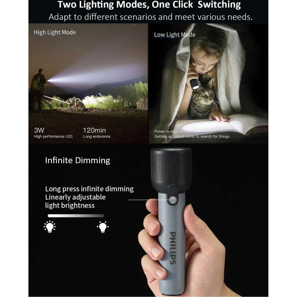 Key Features: 【Multifunctional Flashlight】The mini flashlight design with 400lm and the led light has a maximum illumination range of 150 meters, whether you’re camping, hiking, or other indoor, outdoor activities, our super bright flashlight will provide the reliable lighting you need 【2 Lighting Modes Torch Light】Supporting flashlight high/low light mode. Click to switch between high/low light flashlight. Long press to change light brightness in high & low mode, suitable for various use scenarios 【2000mAh Long Endurance】Torch light Built in 2000mAh rechargeable lithium battery, capable of illuminating for 120 minutes in high mode, paired with USB-C charging port for easy charging at any time 【Waterproof & Anti Drop】12 month warranty. The flashlight is made of durable ABS+PC material, high strength and good toughness, drop resistance height of 1.5 meter. Hidden waterproof USB-C charging port, IP44 waterproof and dustproof, safe and reliable 【Power Indicator Light & Anti-Slip】The remaining battery level indicator light is green for 100% -20%, red for 20% -10%, and flashing red for less than 10%. The anti slip pattern makes you grip more firmly, not afraid of bumps, compact and easy to carry, suitable for various outdoor use scenarios