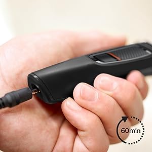 From the manufacturer Key Features: Trim and style your face & hair with 8 tools at home with ease All your hair trimming needs at home with multiple hair combs 9,12,16 mm Run time up to 60 minutes of cordless use per charge, No-slip rubber grip for improved comfort and control No-slip rubber grip for improved comfort and control Maintenance free :No oil needed Showerproof for convenient use in the shower and cleaning