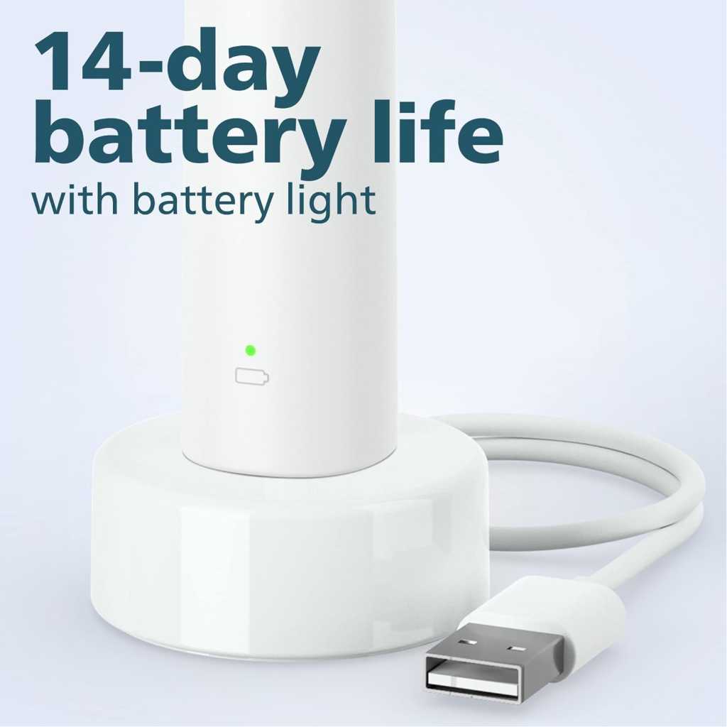 PHILIPS Sonicare 1100 Power Toothbrush, Rechargeable Electric Toothbrush, White Grey. 2 minute SmarTimer with QuadPacer ensure Dentist-recommended brushing time. Battery life up to 14 days Slim ergonomic design makes brushing easier and more comfortable Easy-start gently eases you into the electric brushing experience by gradually increasing power Long battery life with battery light indicator: One charge last for 2 weeks Includes: 1 Philips Sonicare 1100 electric toothbrush, 1 SimplyClean (C1) brush head, and 1 USB charger (wall adaptor not included) Subscribe & Save on genuine Philips Sonicare brush head replacements and save up to 15%. From the manufacturer Key Features: PHILIPS Sonicare 1100 Power Toothbrush, Rechargeable Electric Toothbrush, White Grey. 2 minute SmarTimer with QuadPacer ensure Dentist-recommended brushing time. Battery life up to 14 days Slim ergonomic design makes brushing easier and more comfortable Easy-start gently eases you into the electric brushing experience by gradually increasing power Long battery life with battery light indicator: One charge last for 2 weeks Includes: 1 Philips Sonicare 1100 electric toothbrush, 1 SimplyClean (C1) brush head, and 1 USB charger (wall adaptor not included) Subscribe & Save on genuine Philips Sonicare brush head replacements and save up to 15%.